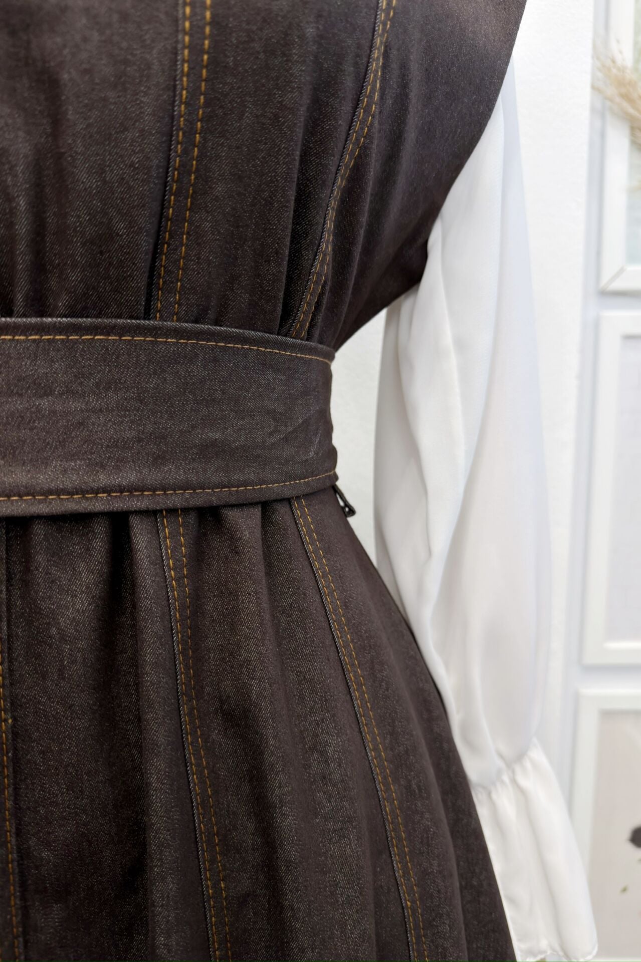 Acı Kahve Dikiş Detaylı Penny Kot Jile
