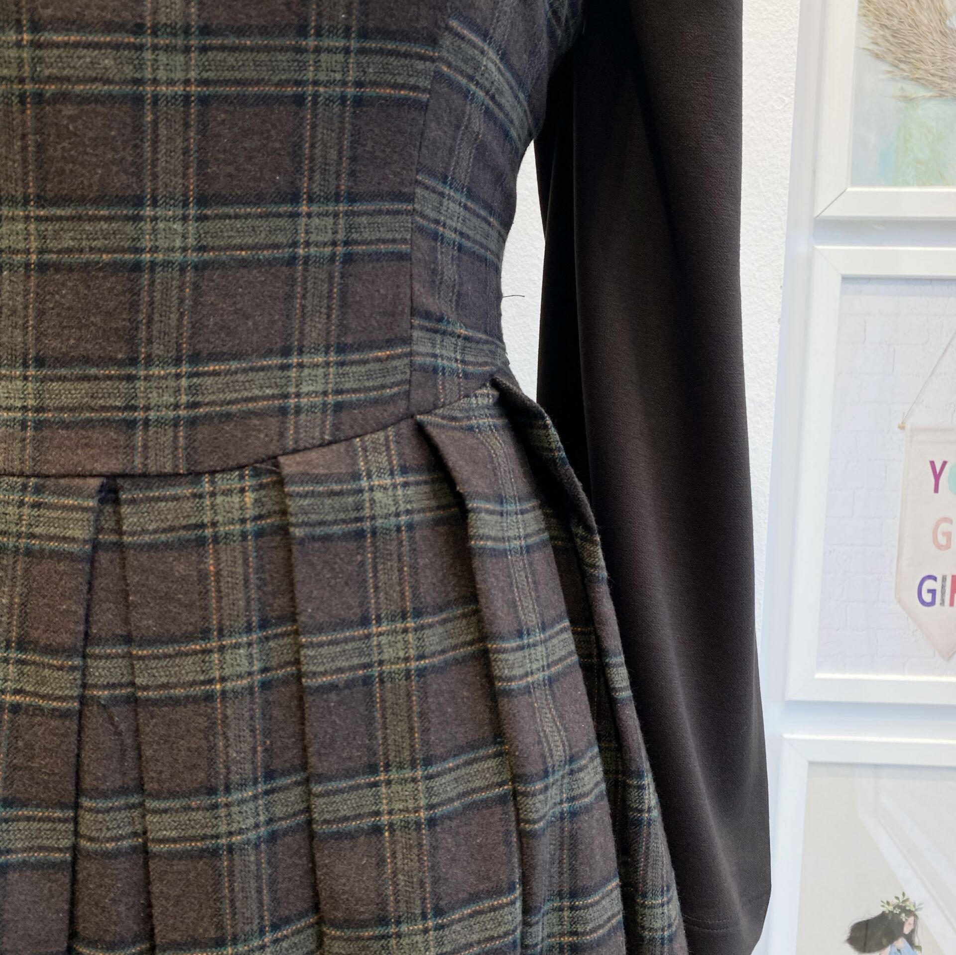 Acı Kahve Ekose Desenli Deri Detaylı Jile