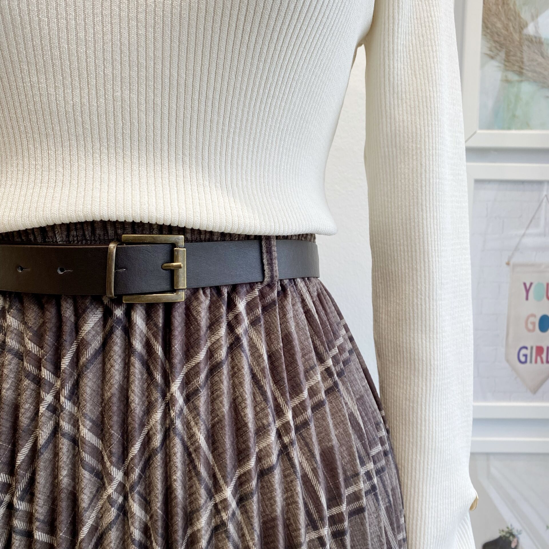 Acı Kahve Ekose Desenli Kemer Detaylı Cillian Etek