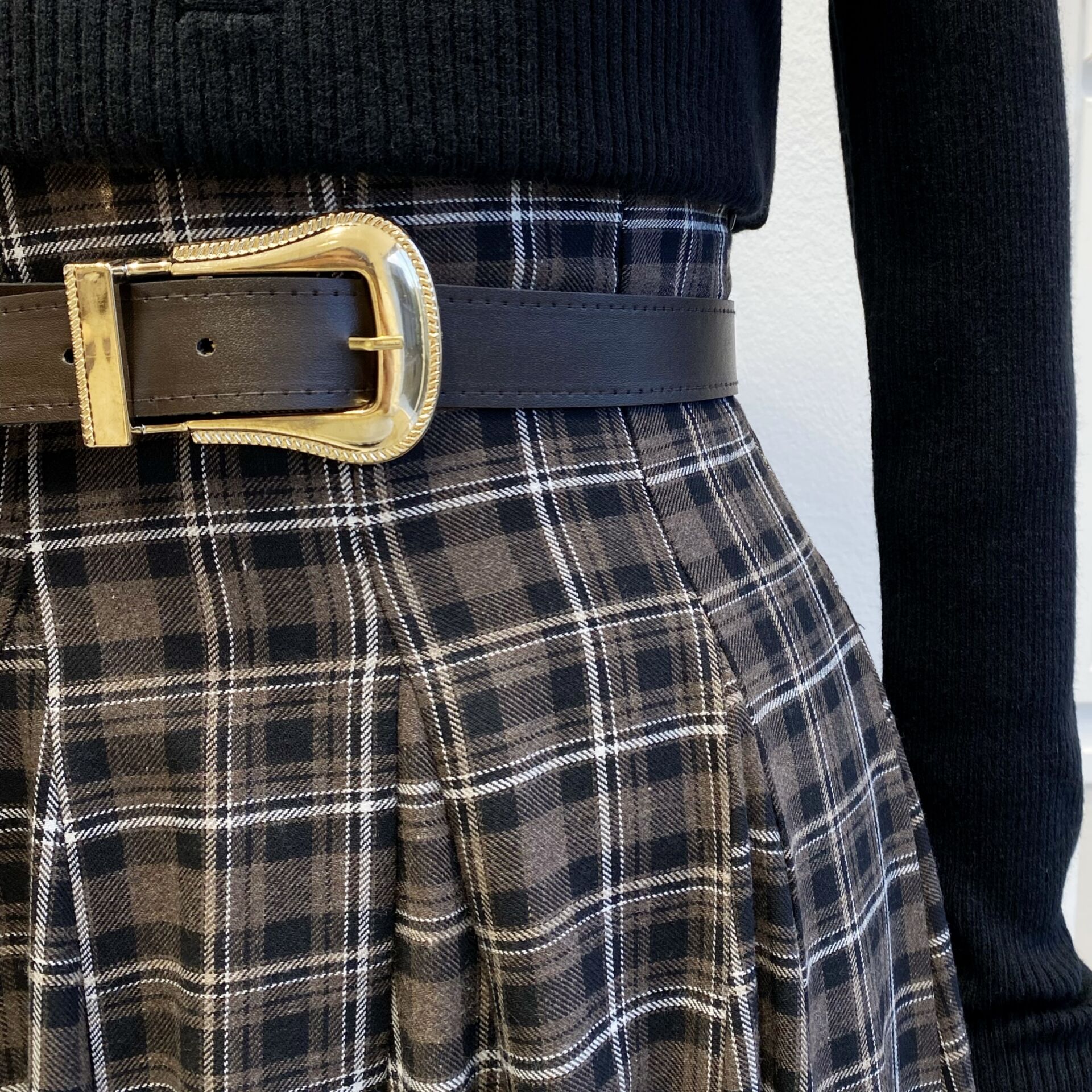 Acı Kahve Minik Ekose Desenli Kemerli Etek