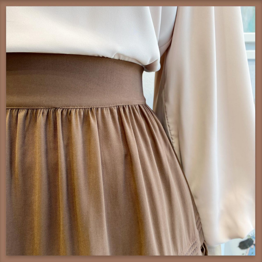 Acı Kahve Nervür Dikiş Detaylı Etek