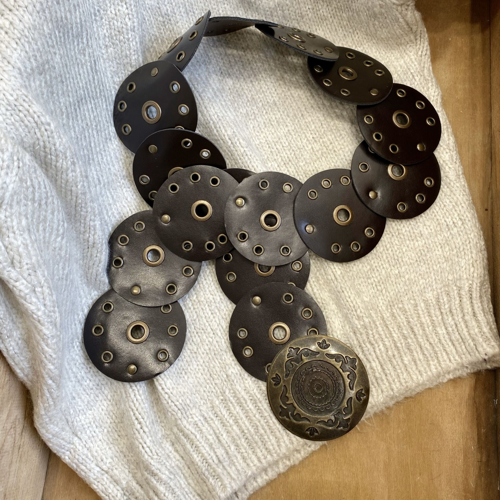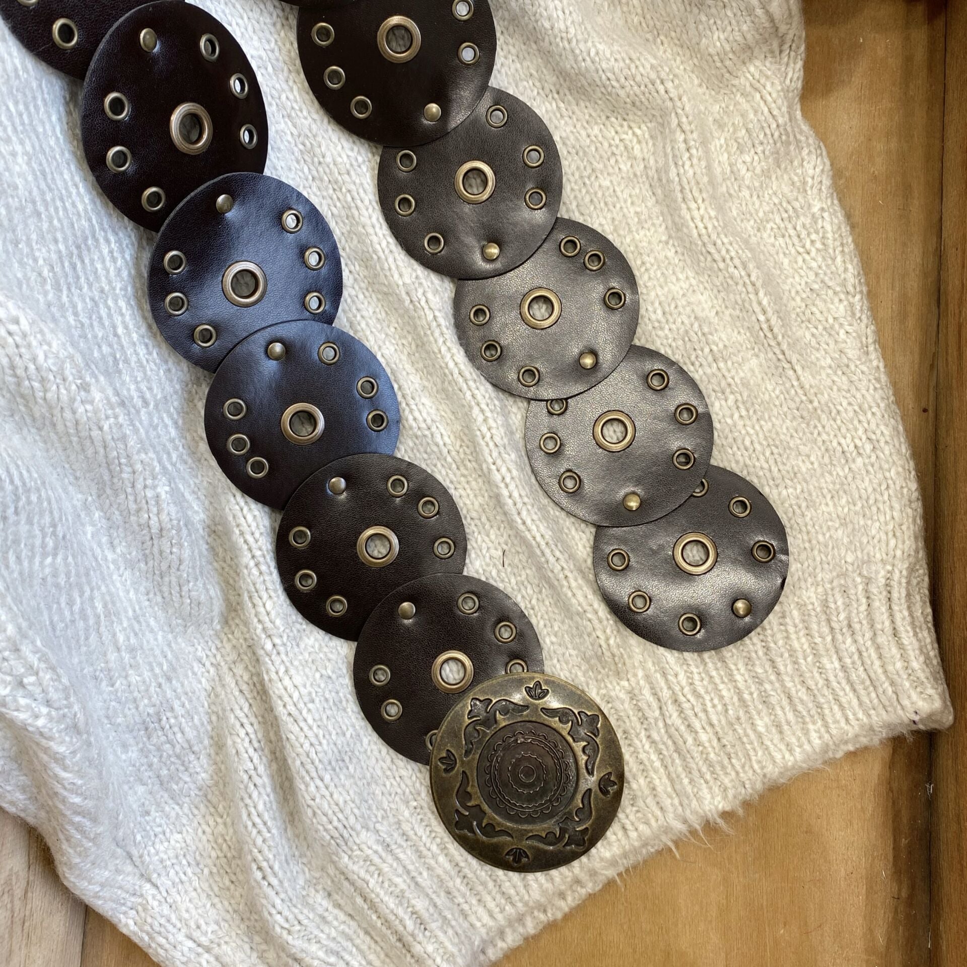 Acı Kahve Yuvarlak Tokalı Bohem Deri Kemer