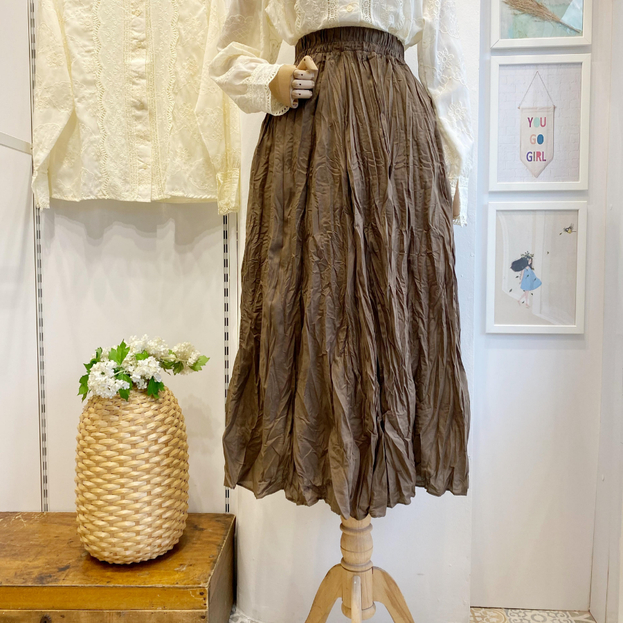 Beli lastikli haki yeşili vual keten etek Rengarenk etekler Faya Boutique'de 1GXY3TNKWG