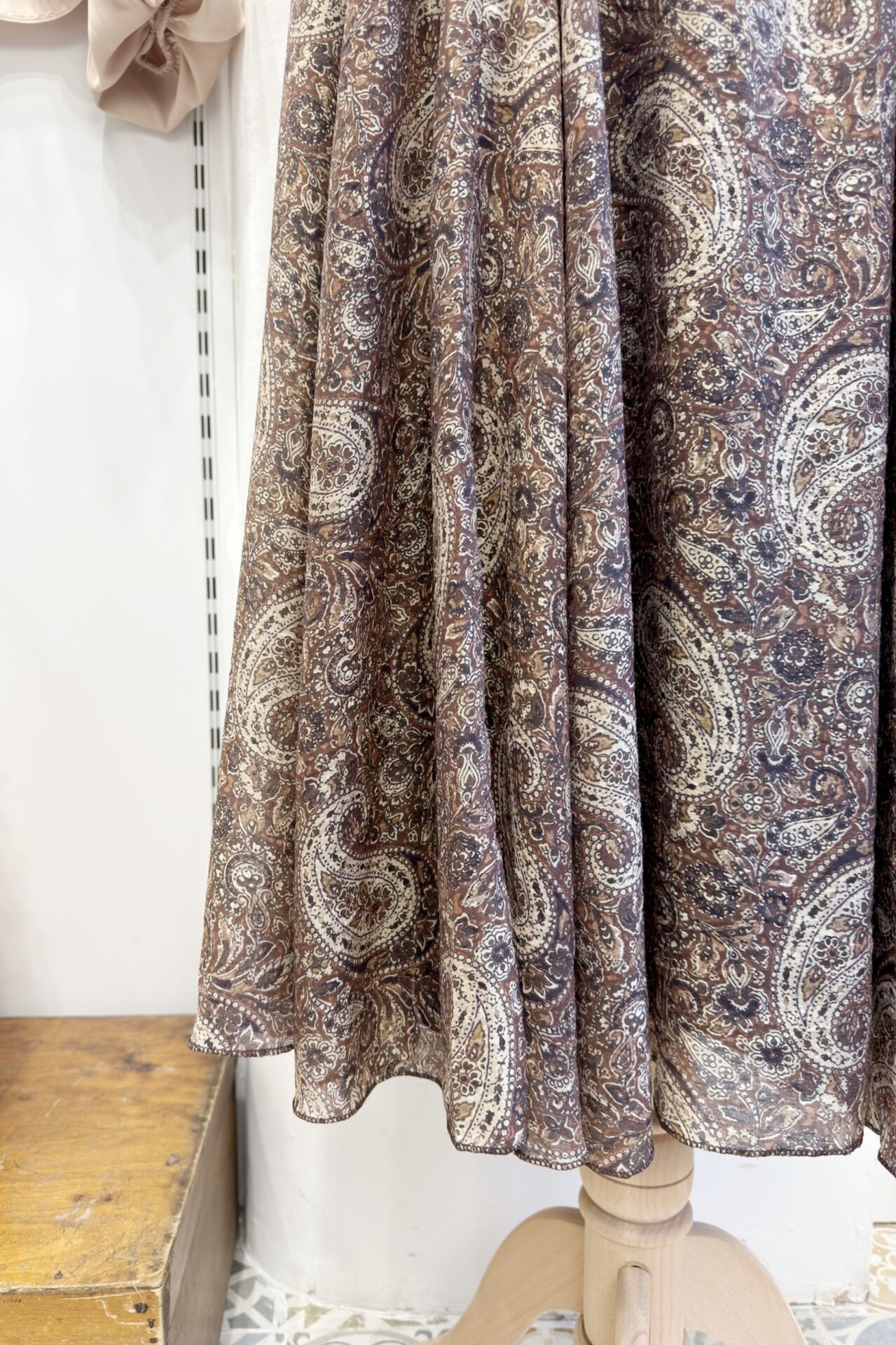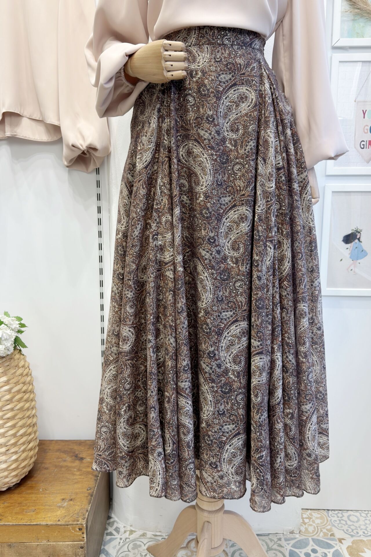 Beli Fermuarlı Kaşmir Desenli Kahverengi Şifon Etek Y9D3
