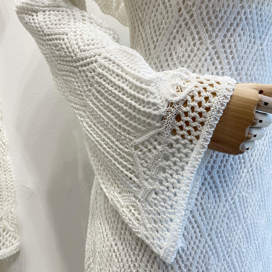 Beyaz Ajurlu Dream Örme Triko Elbise