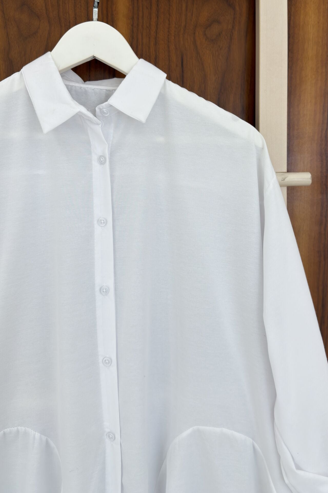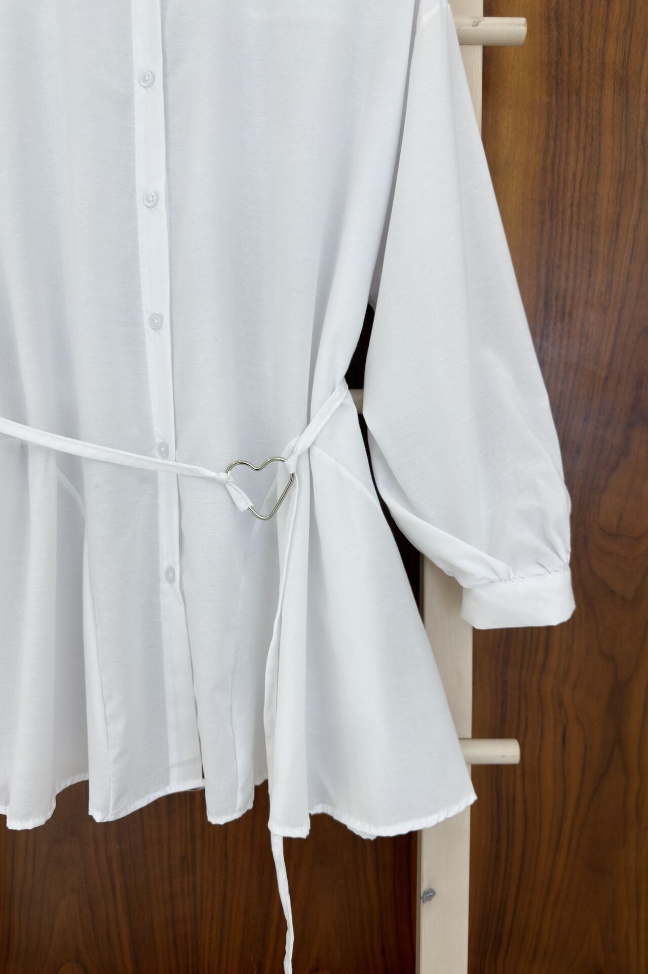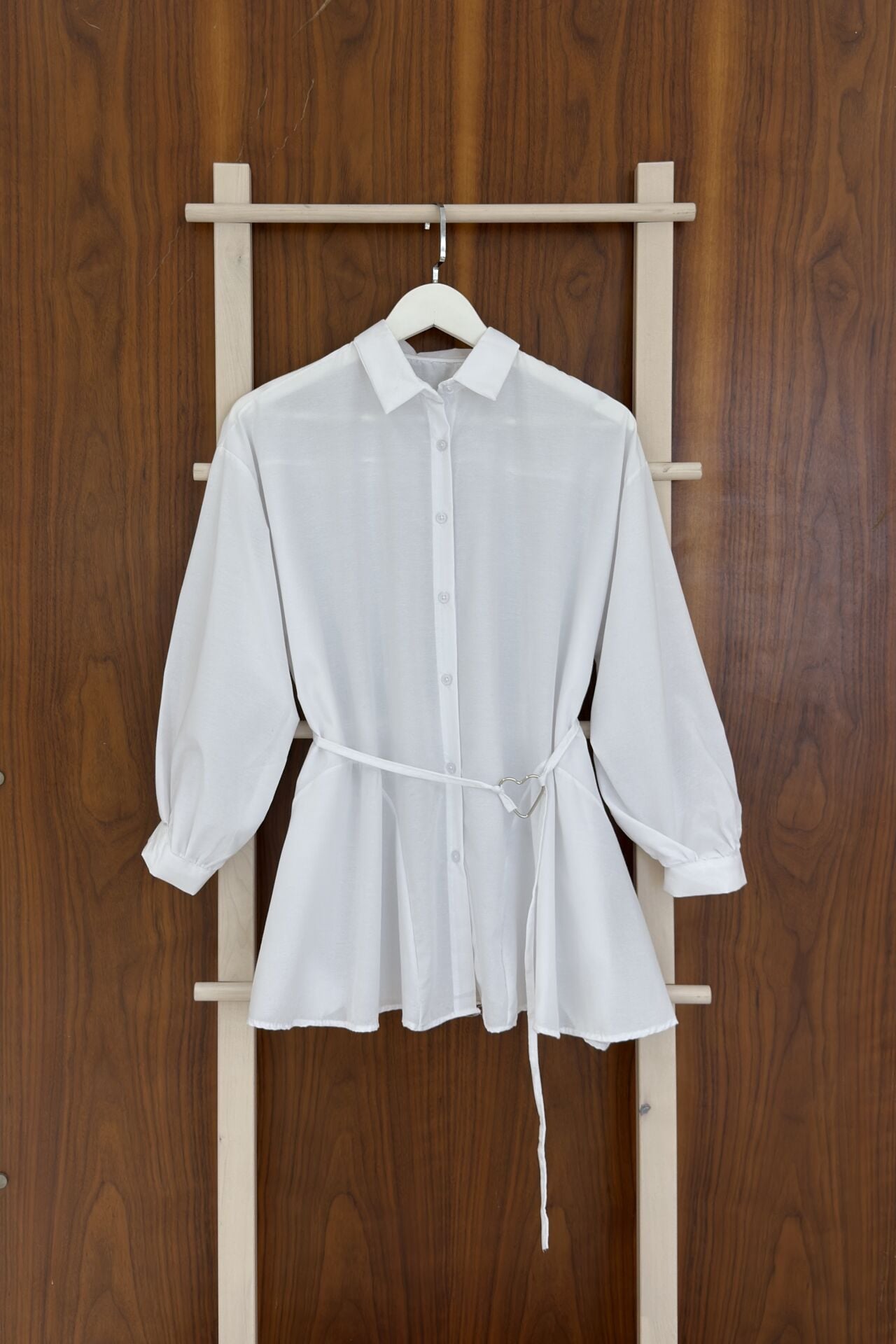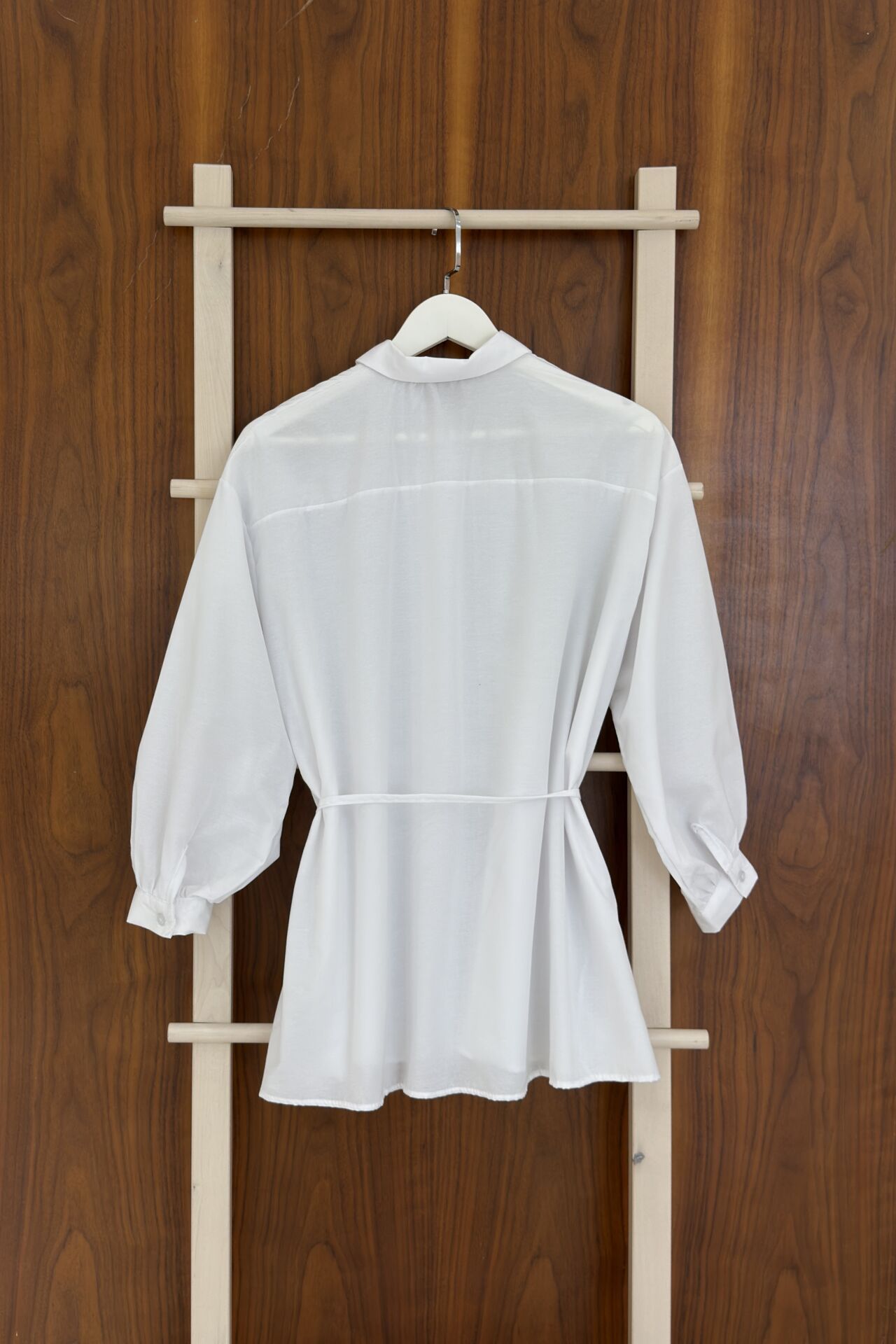 Beyaz Kalpli Kuşaklı Poplin Gömlek
