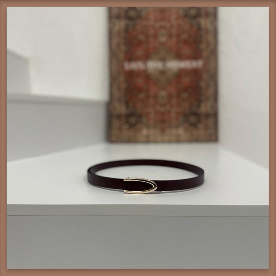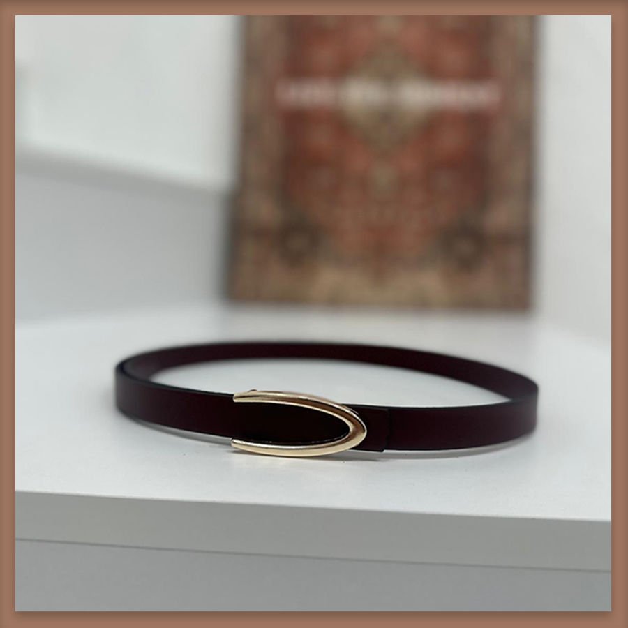 Bordo deri ince altın kemer