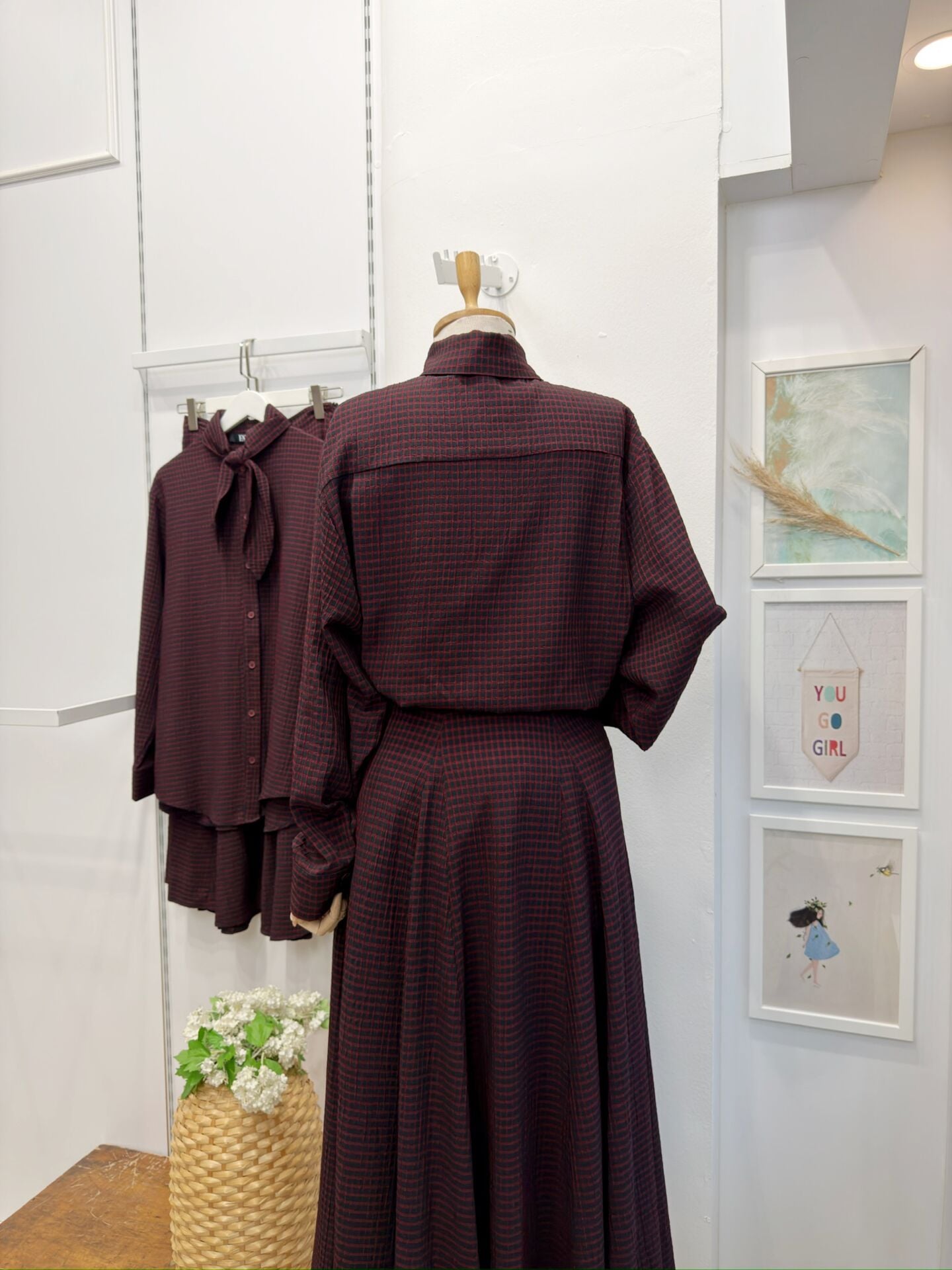 Bordo Fular Yaka Detaylı Pötikareli Rowen Takım
