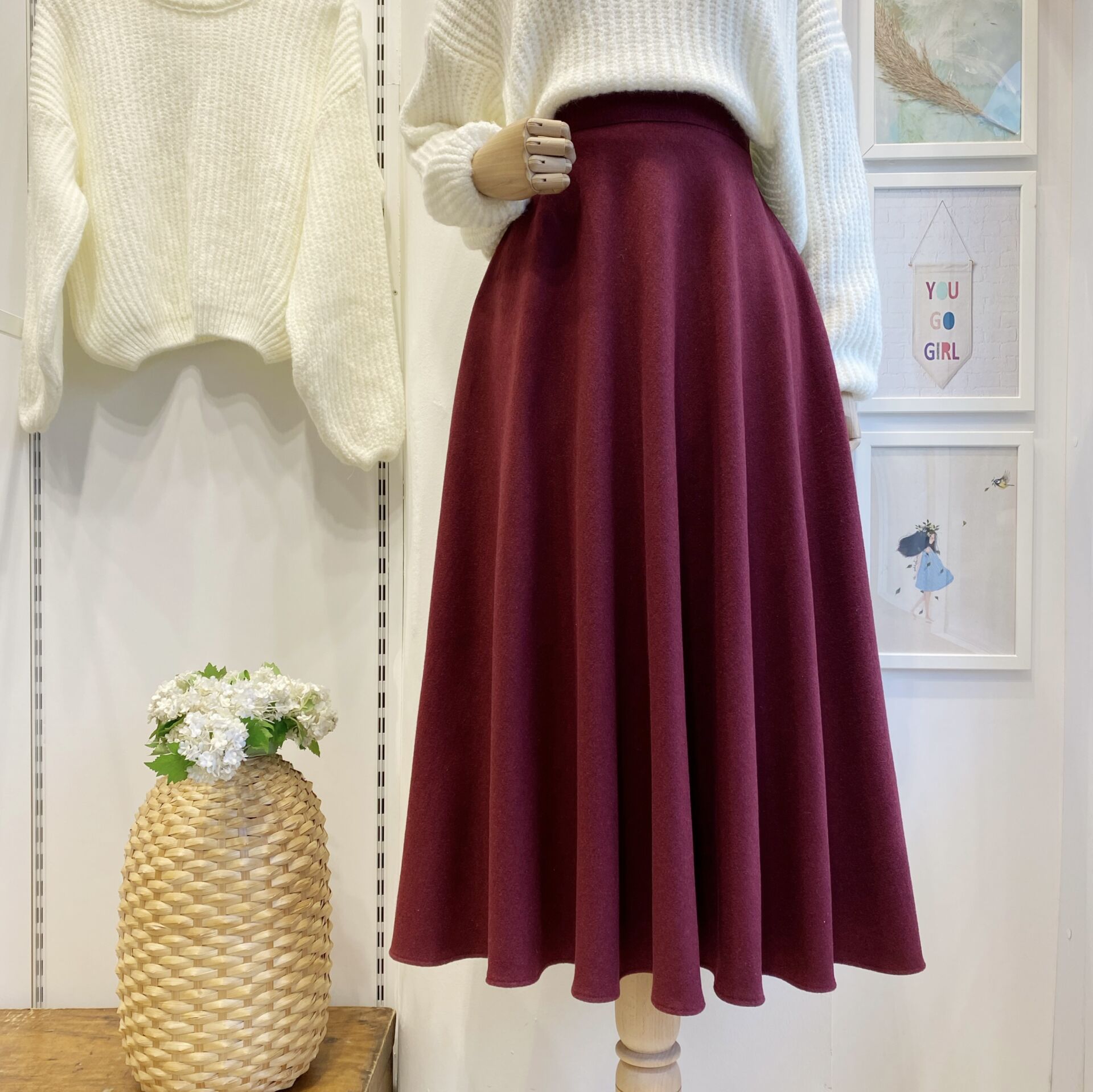 Bordo Kloş Kaşe Etek