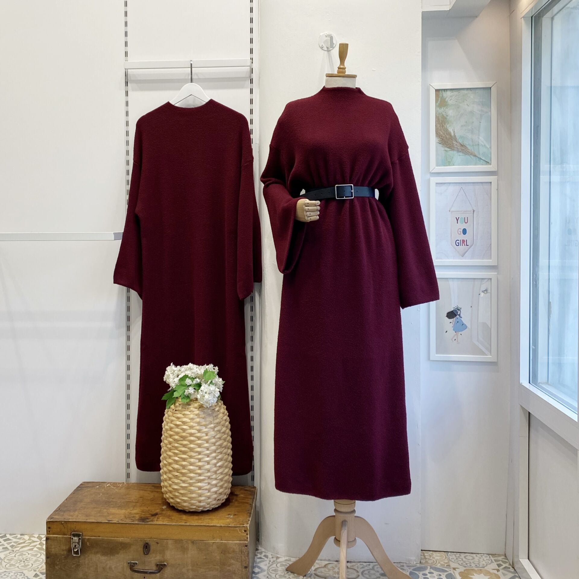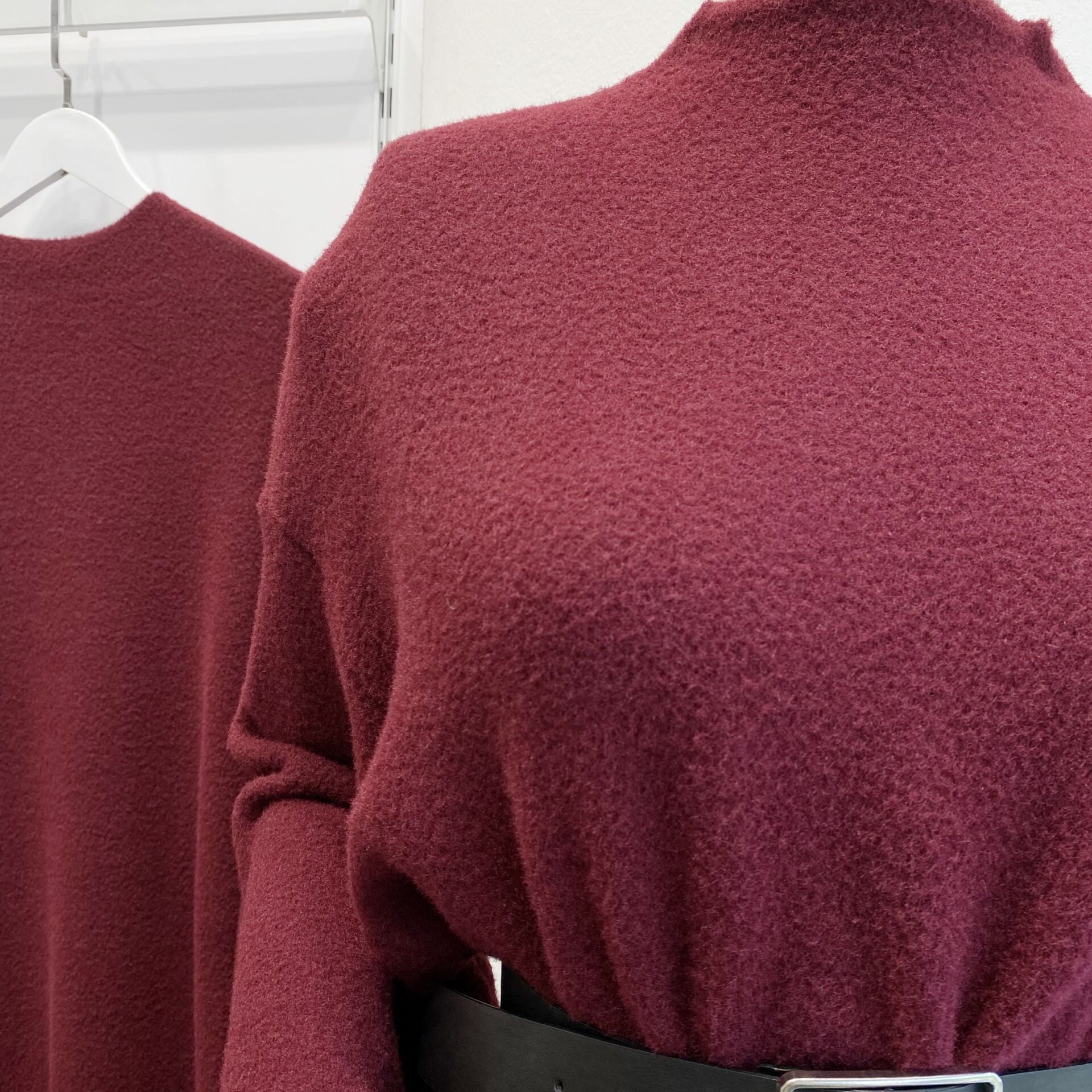 Bordo Peluş Triko Elbise