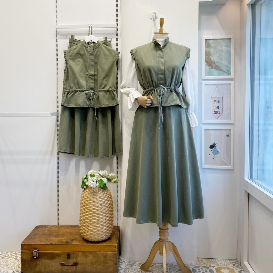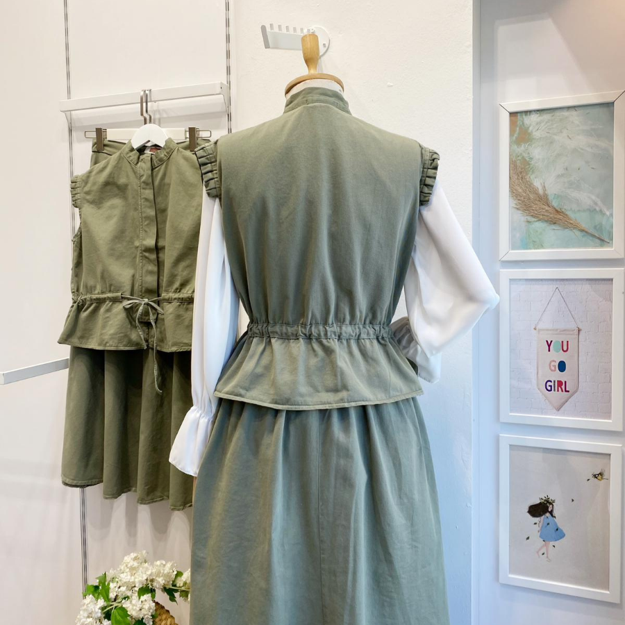 Çağla Yeşili Canopy Yelekli Gabardin Takım