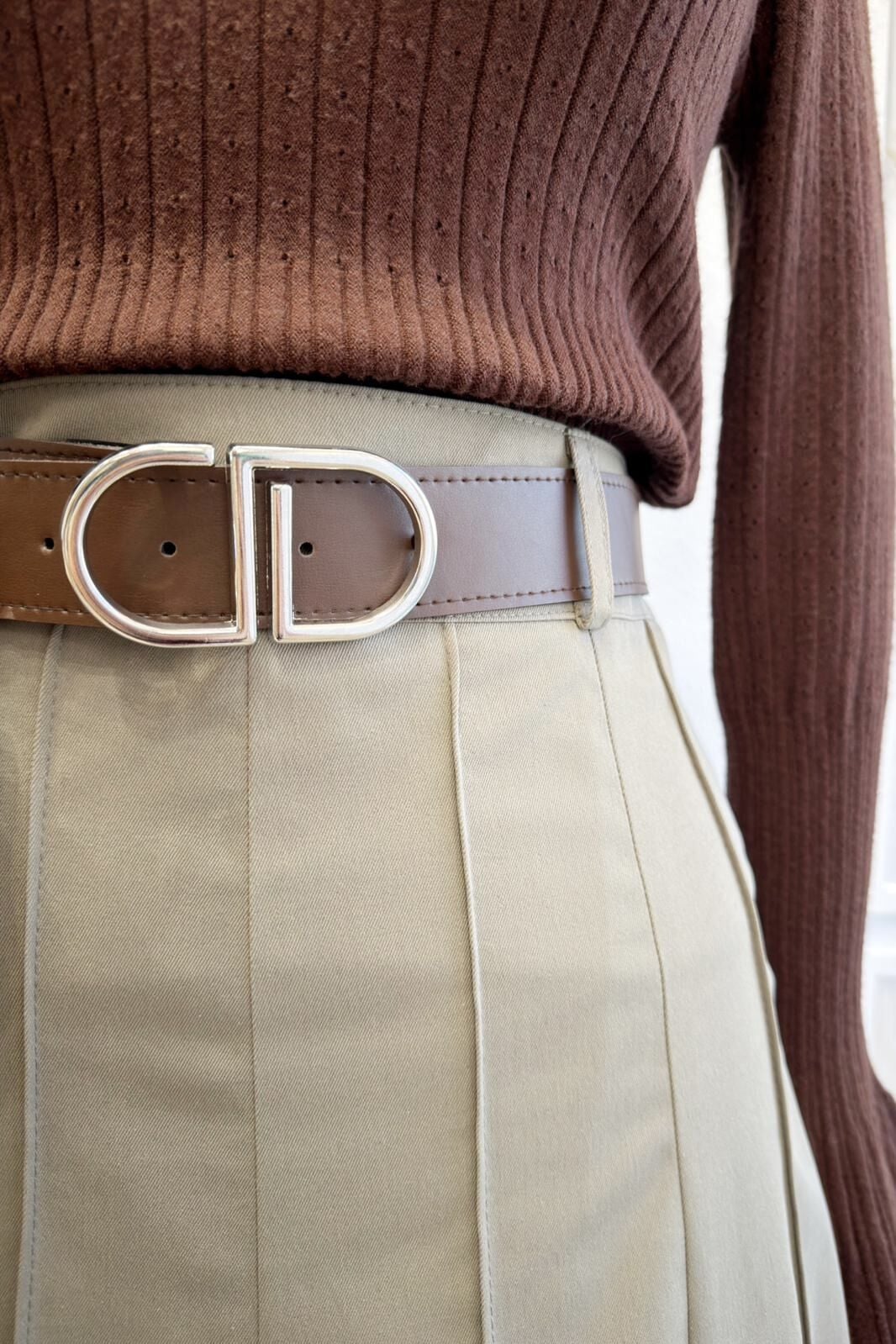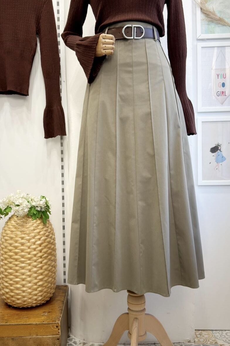 Çağla Yeşili Deri Kemerli Gabardin Etek