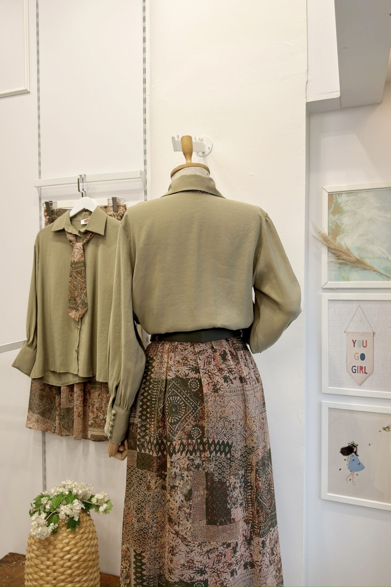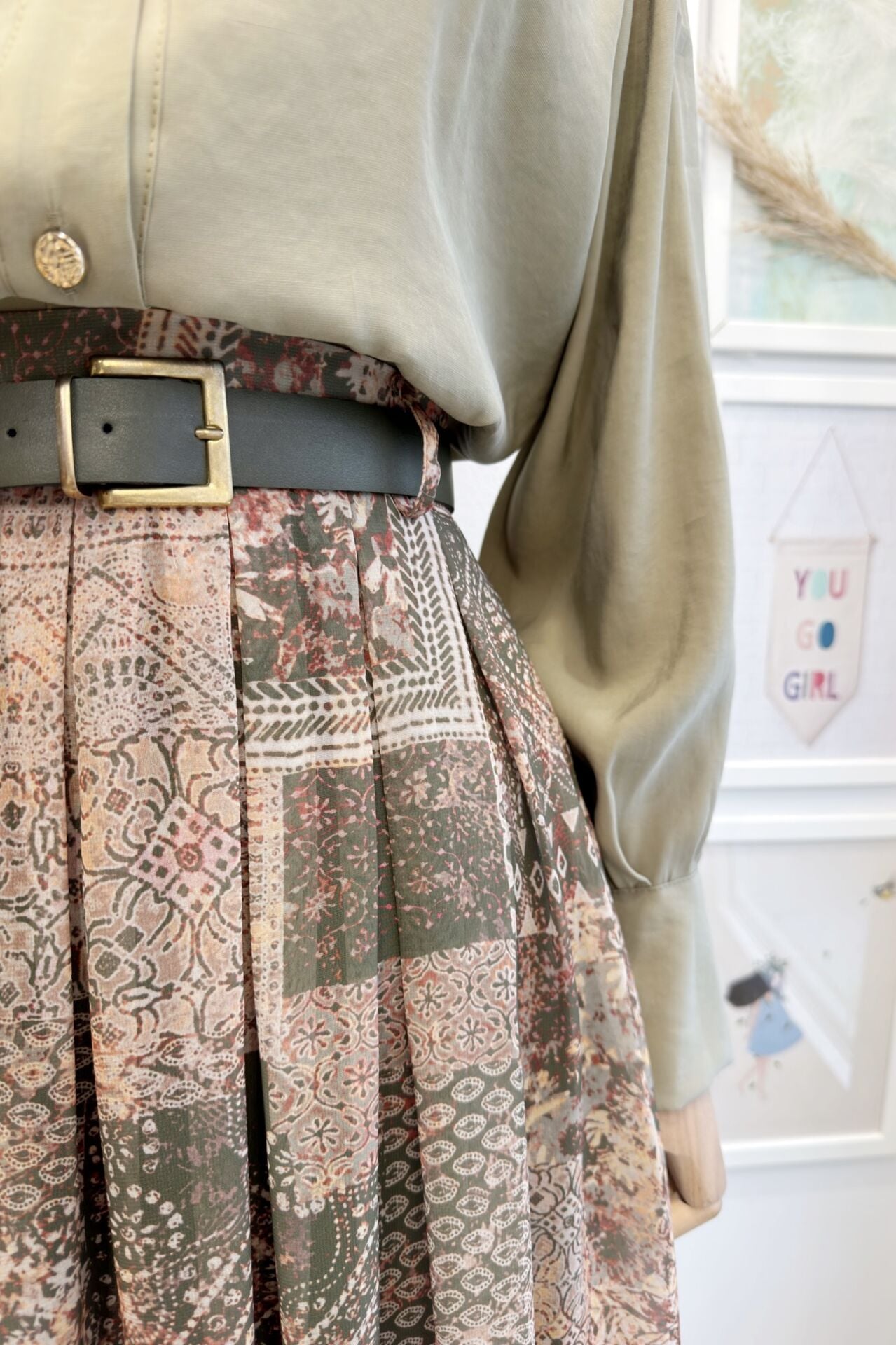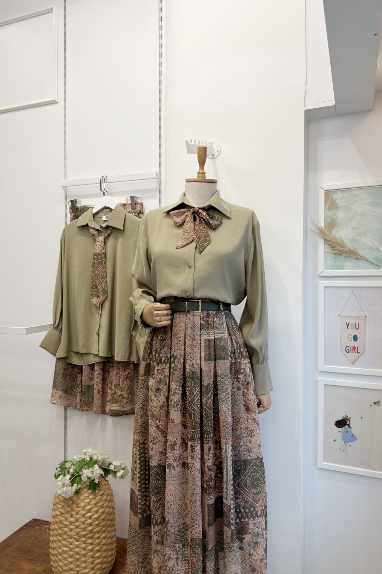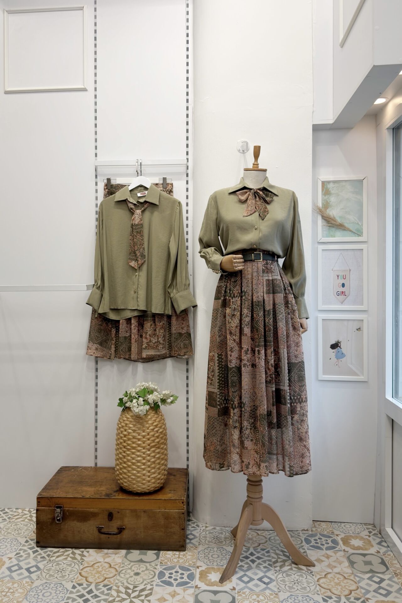 Çağla Yeşili Desenli Şifon Etekli Chermine Takım