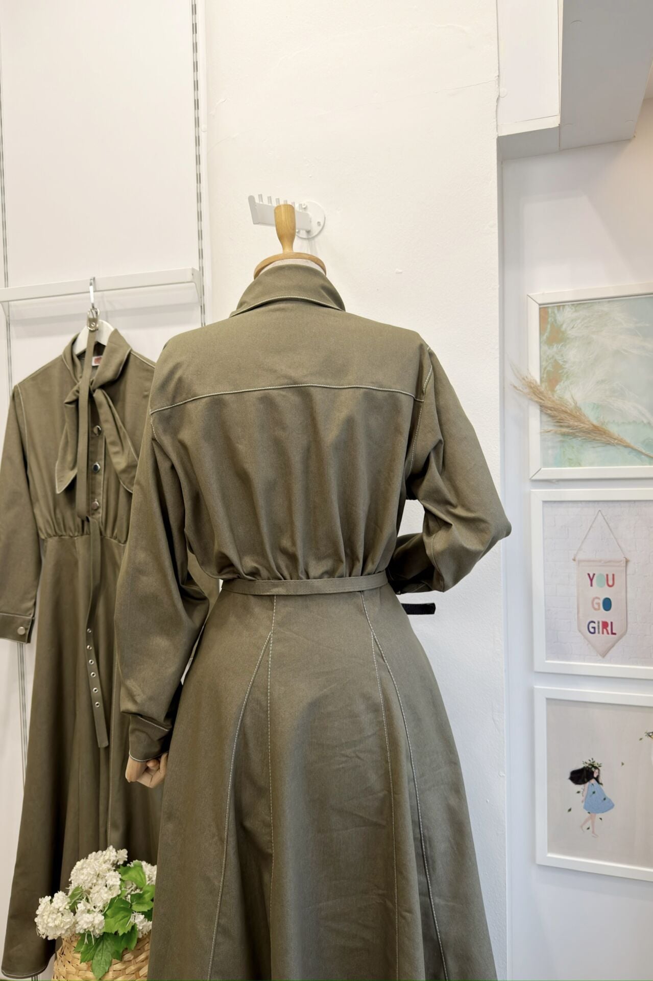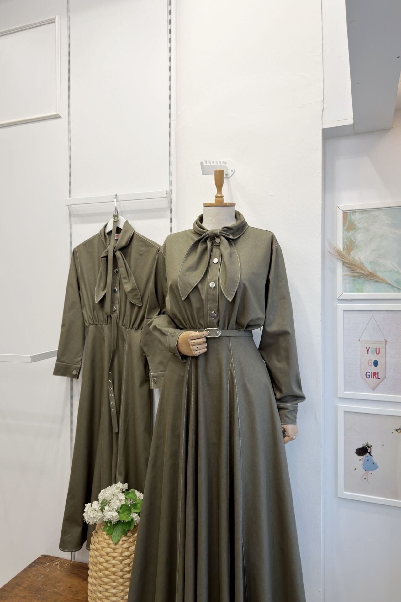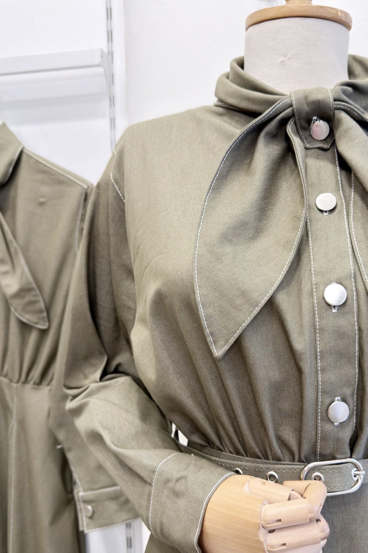 Çağla Yeşili Fular Yaka Detaylı Kot Elbise