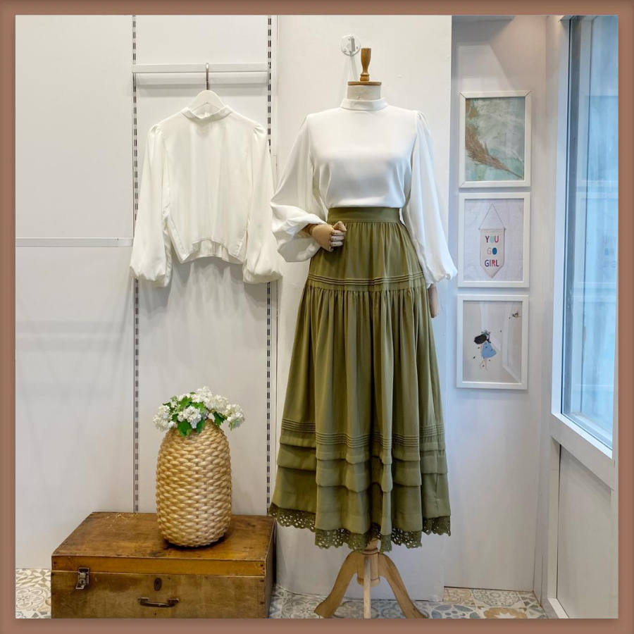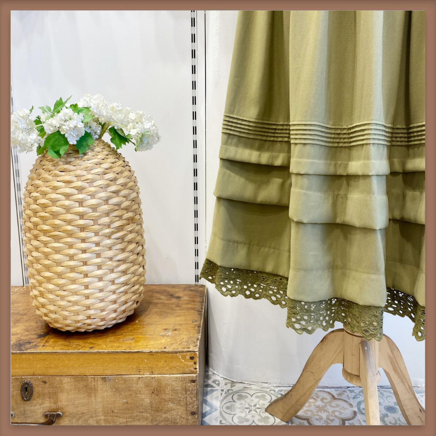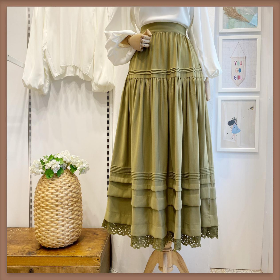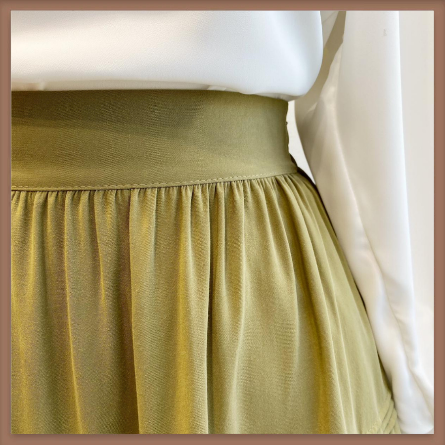 Çağla Yeşili Nervür Dikiş Detaylı Etek