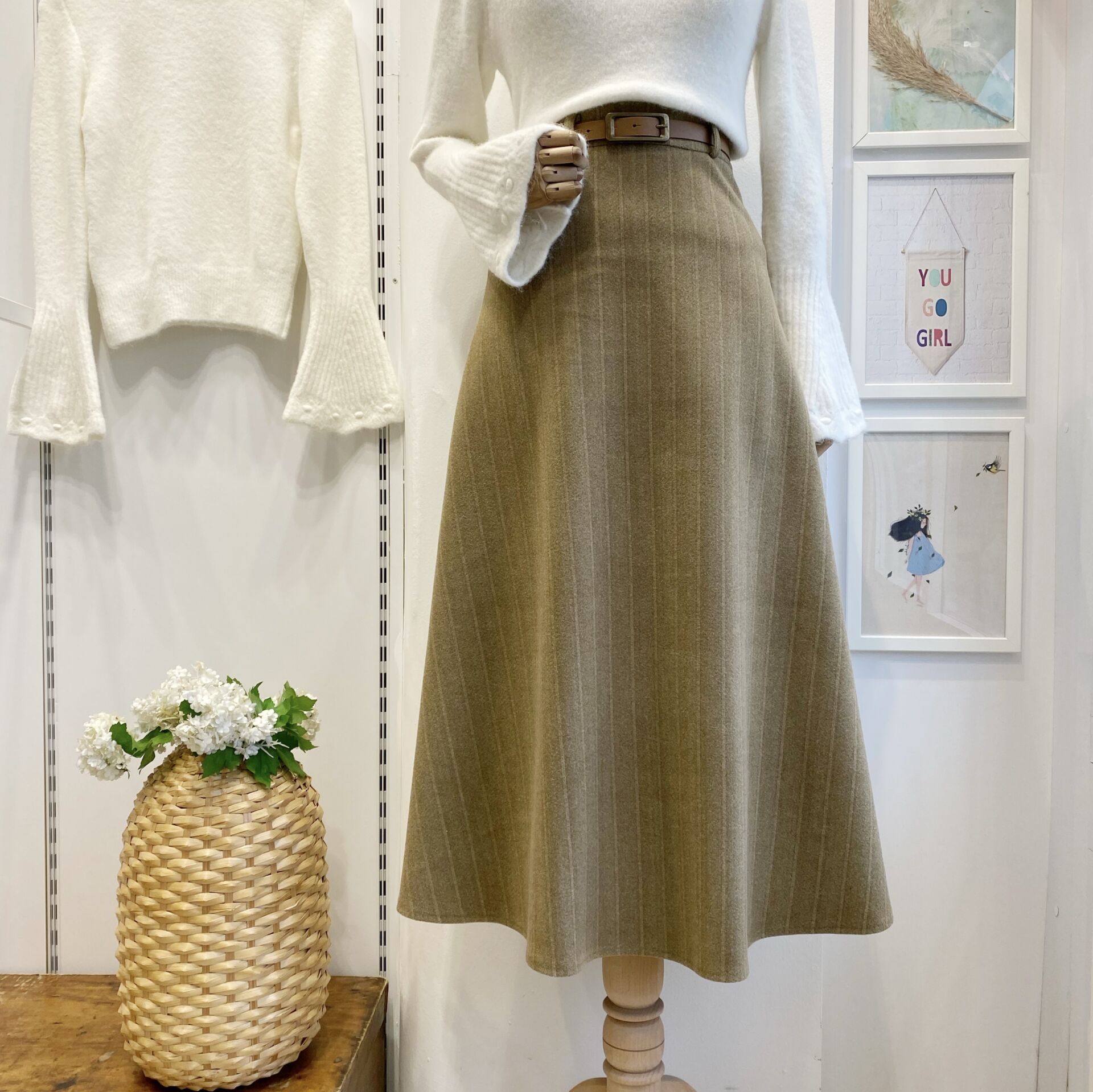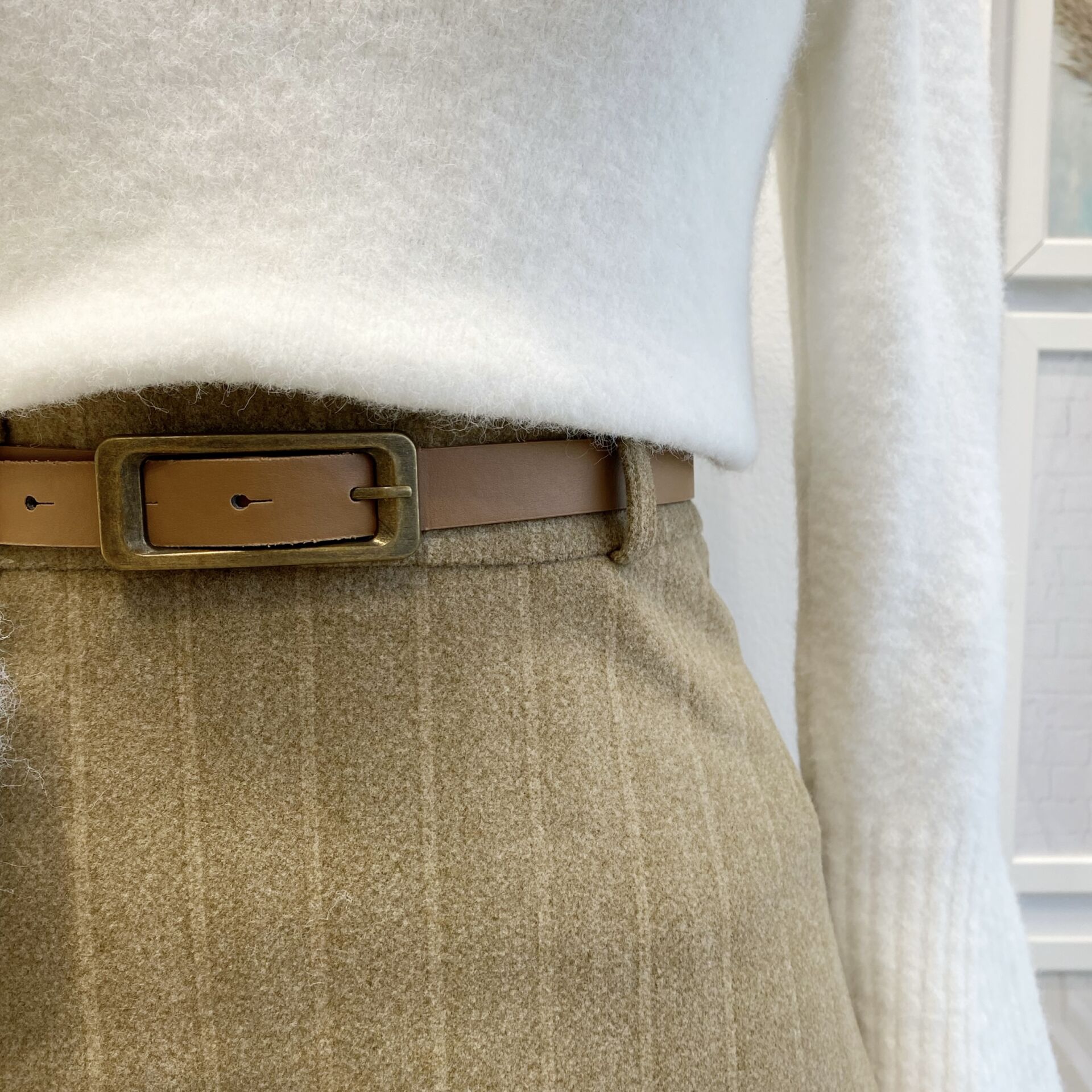 Camel Kemerli Çizgi Desenli Kaşe Etek