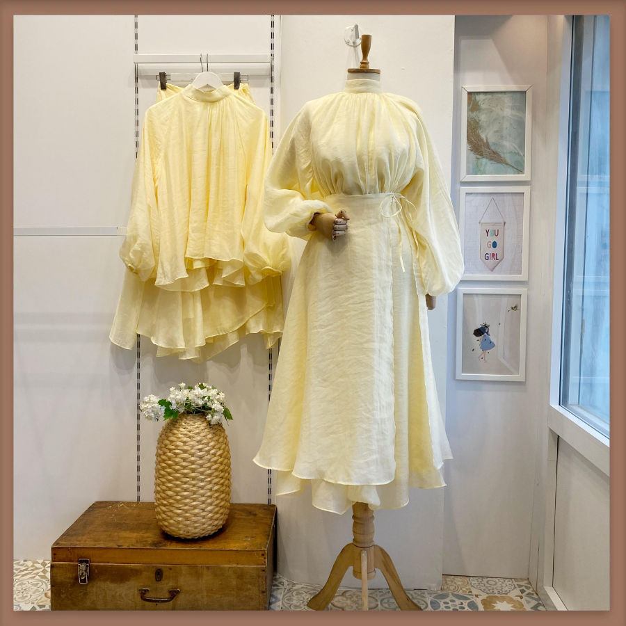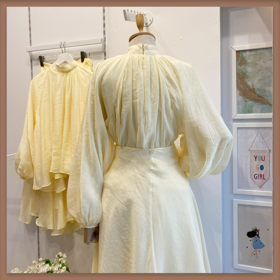 Dalgalı Şifon Kumaş Butteryellow Balon Kol Takım