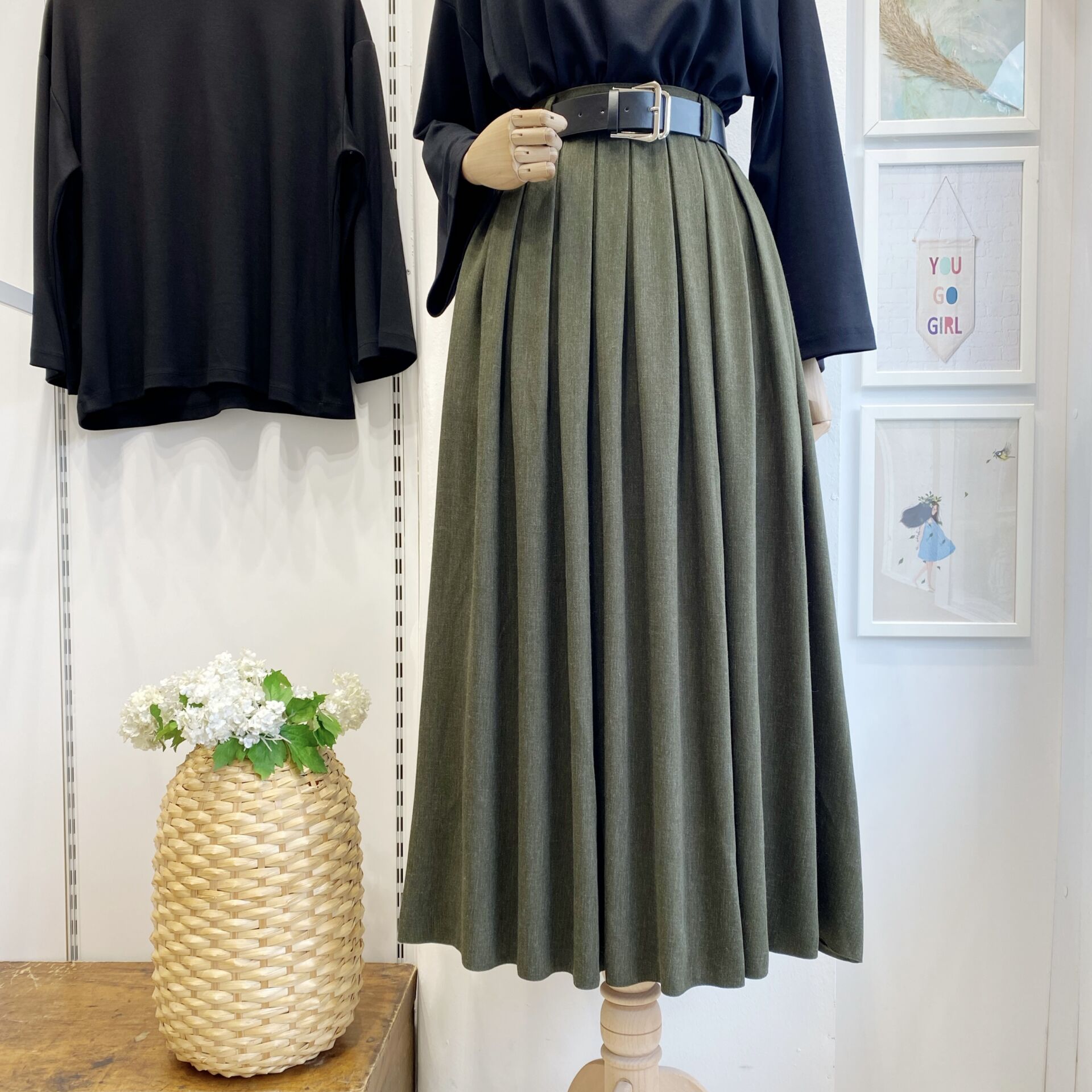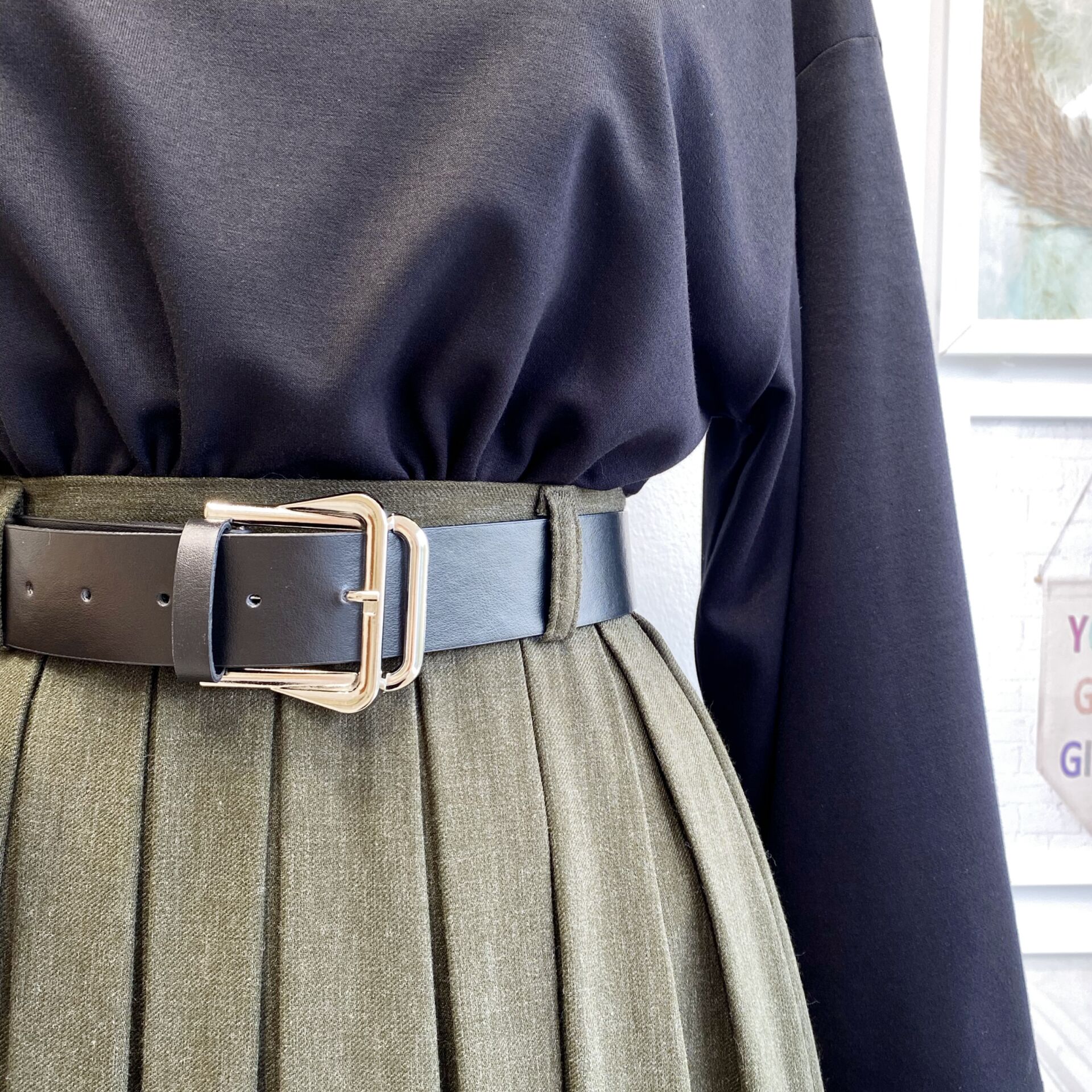Deri Kemerli Haki Yeşili Lacelle Yün Etek