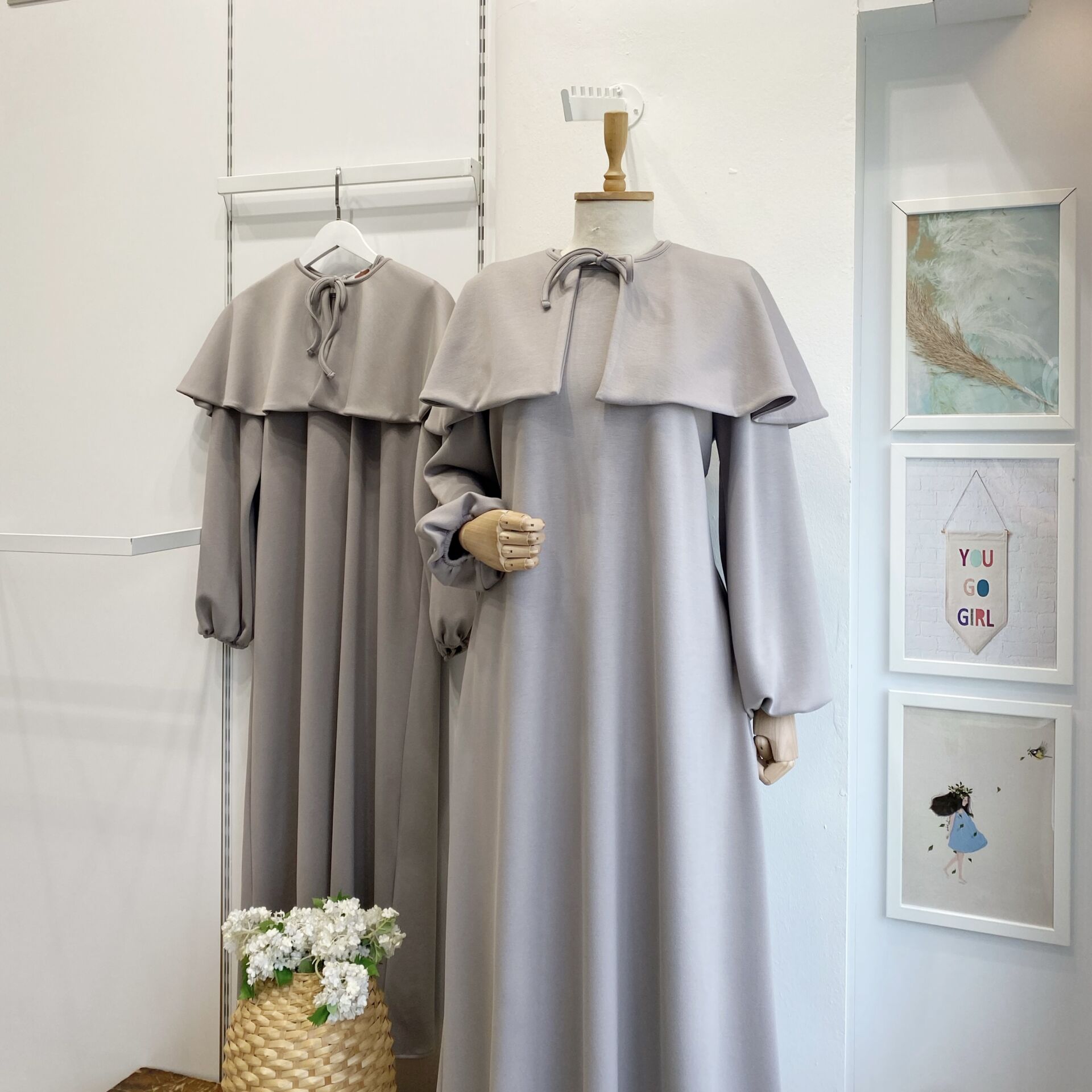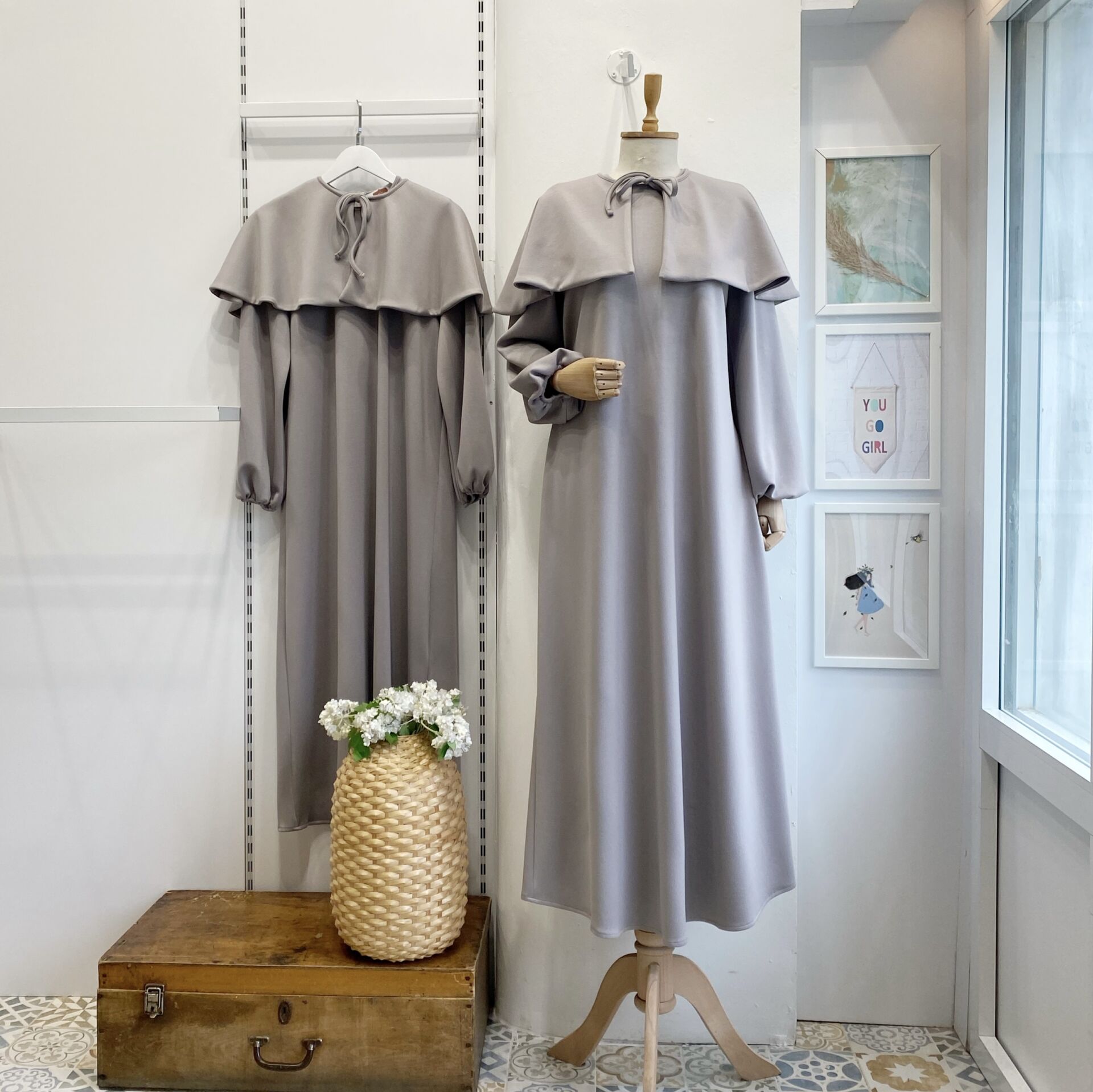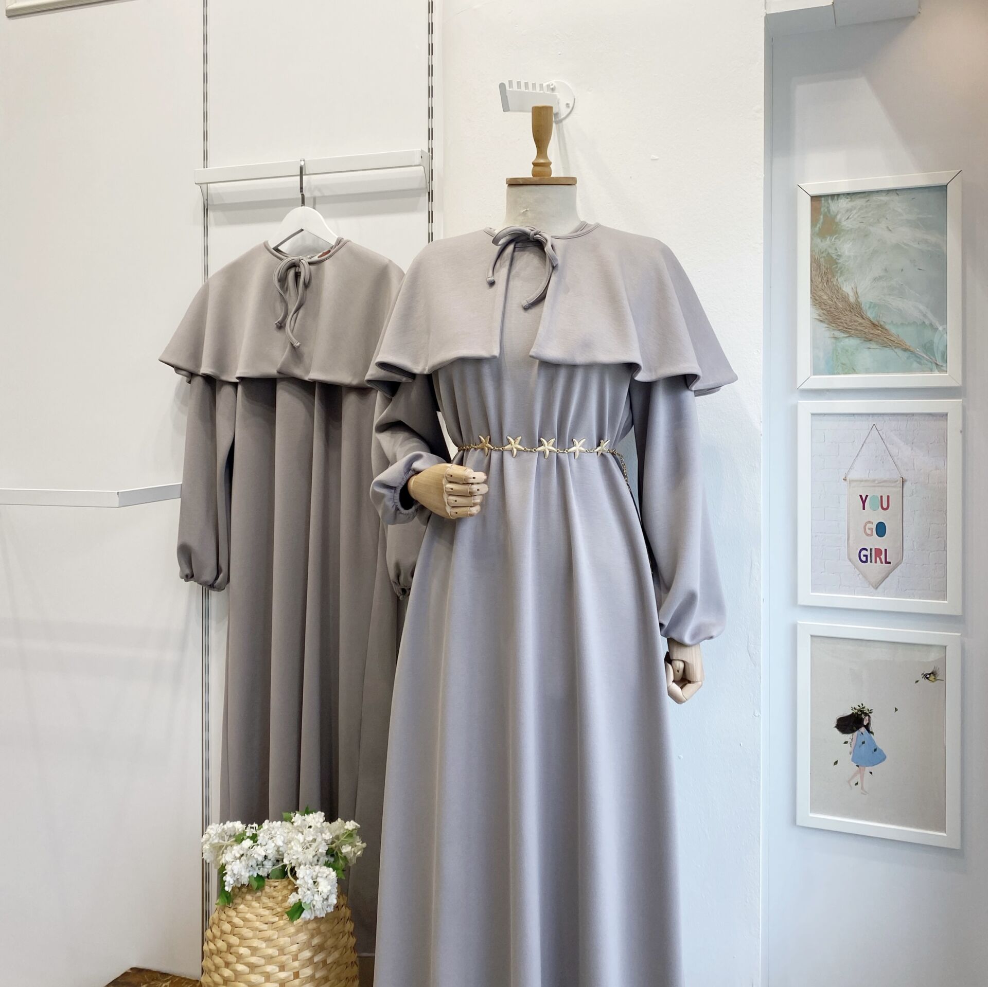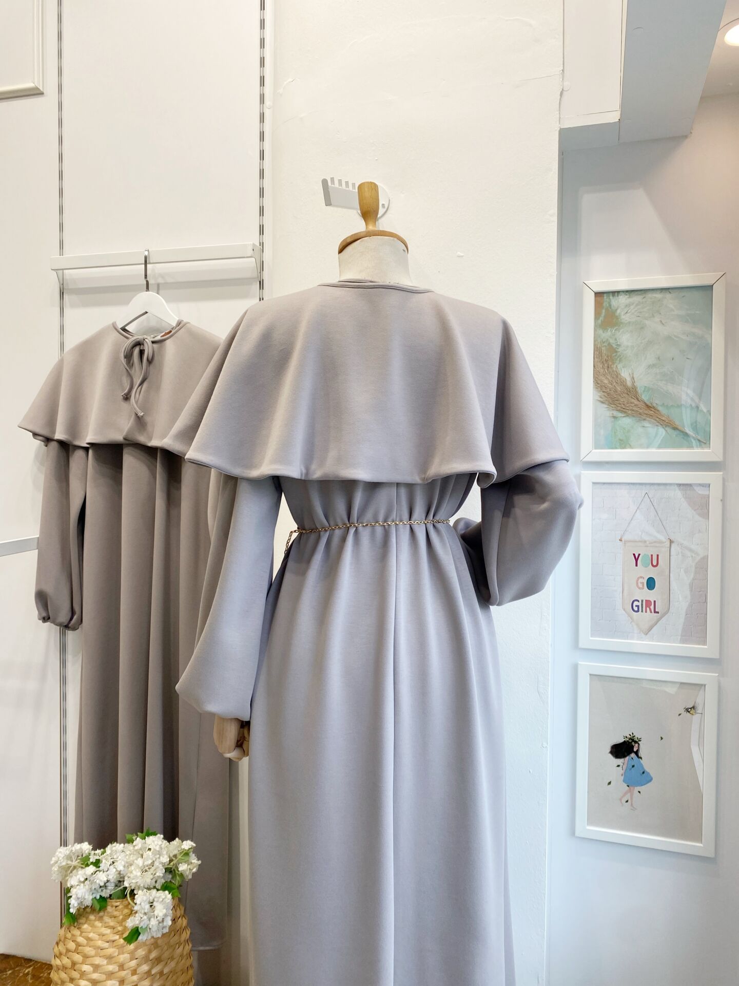 Gri Pelerin Eklemeli Osyho Kumaş Elbise