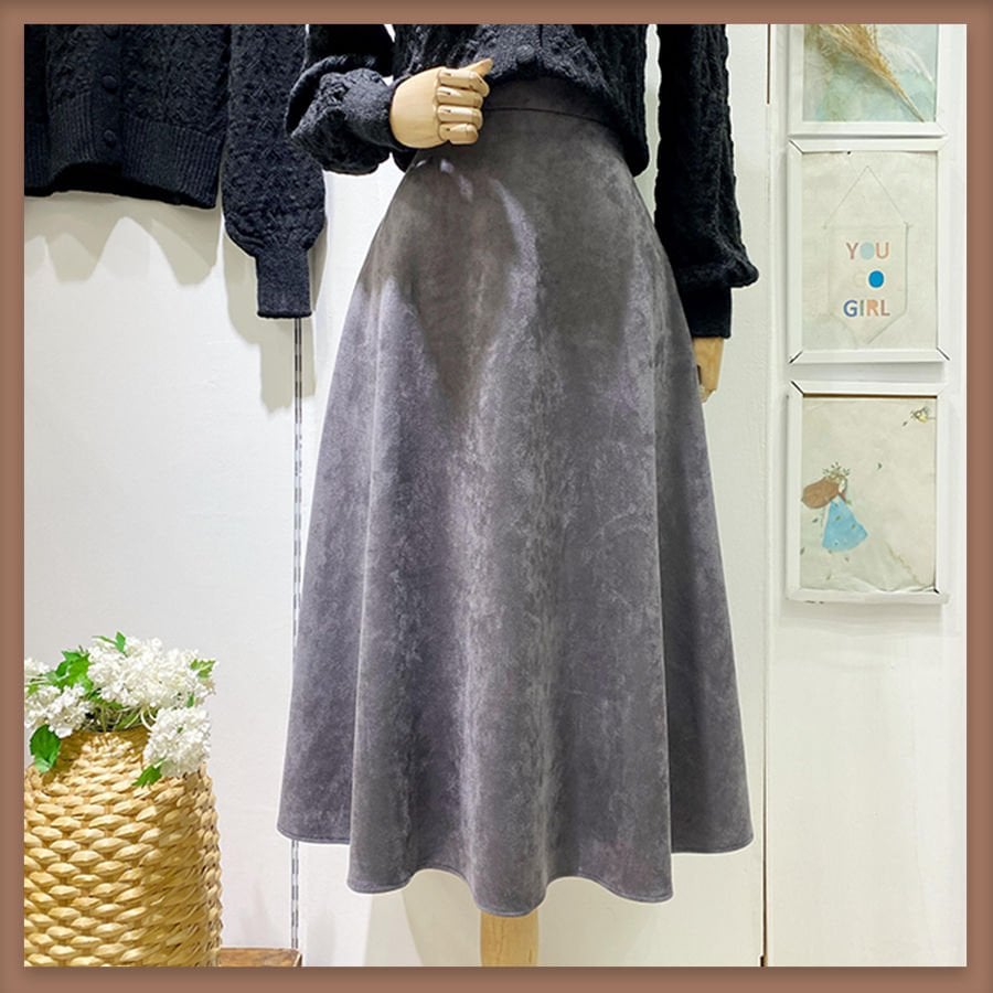 Gri süet kloş etek