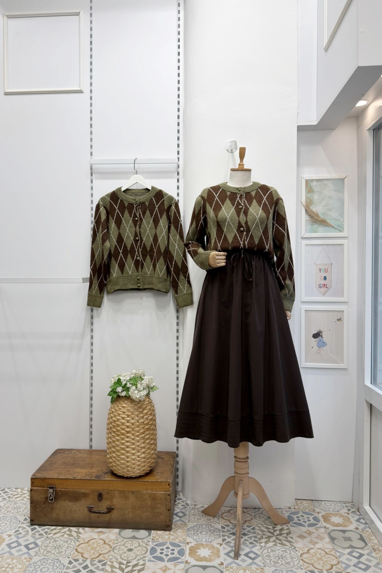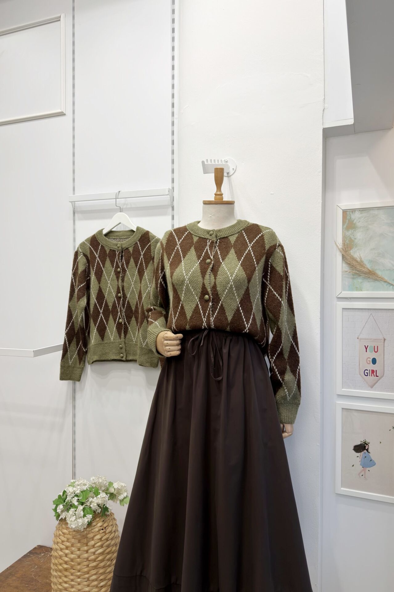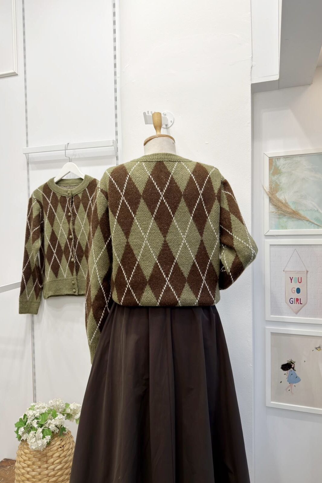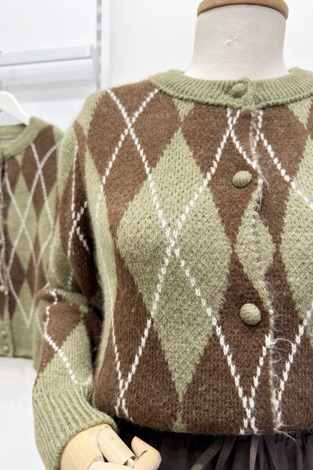 Haki Yeşili Baklava Desenli Yumuşak Dokulu Hırka