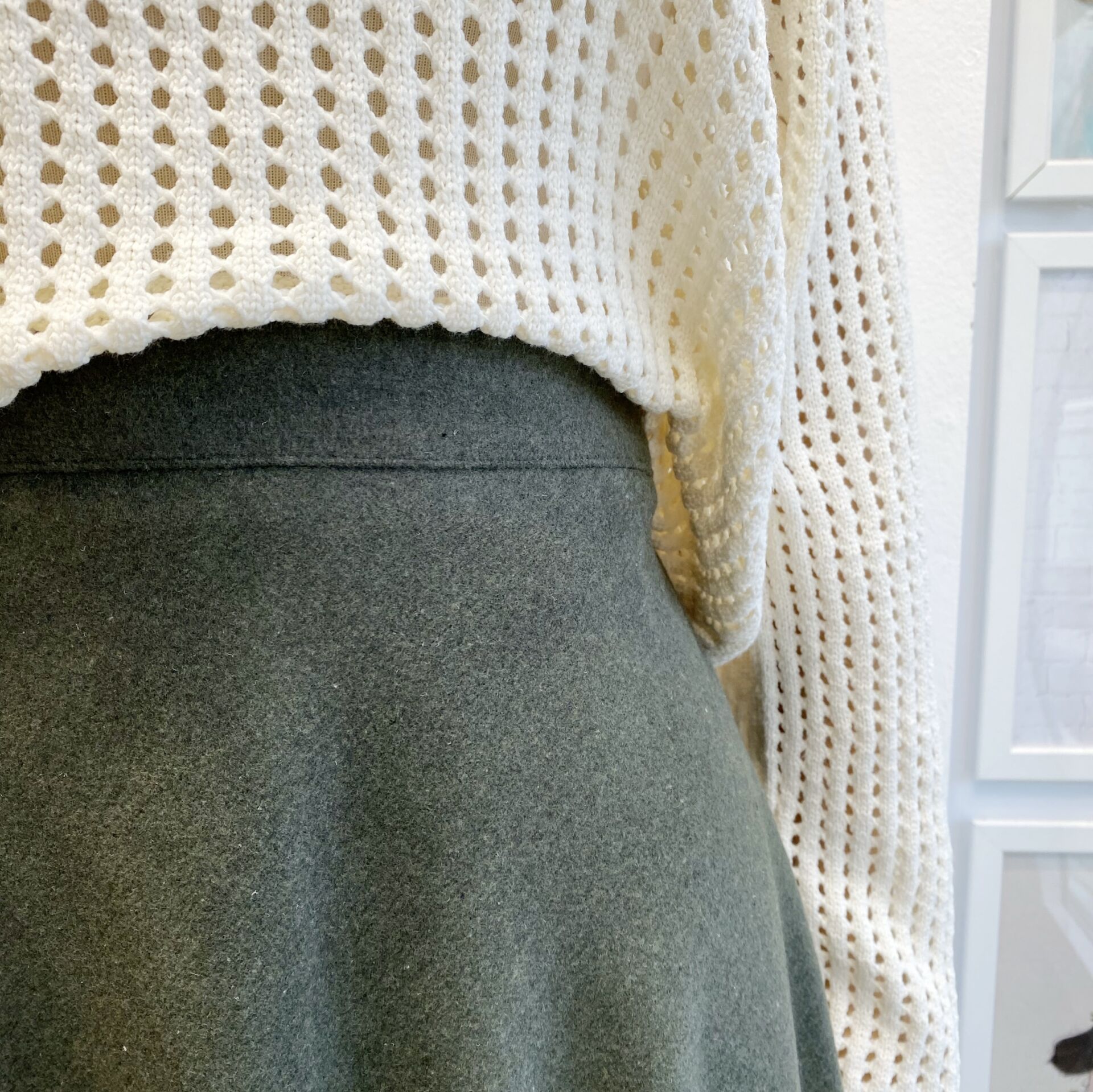Haki Yeşili Kloş Kaşe Etek