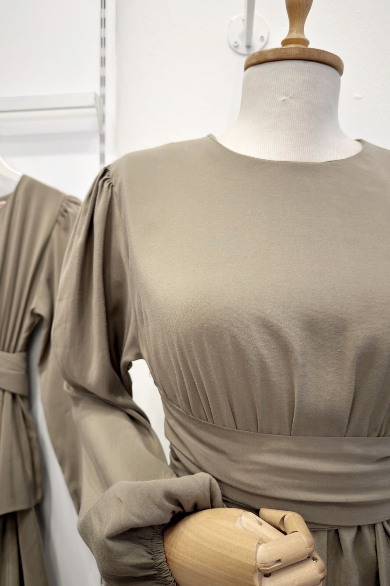 Haki Yeşili Kuşak Detaylı Penny Kat Kat Elbise