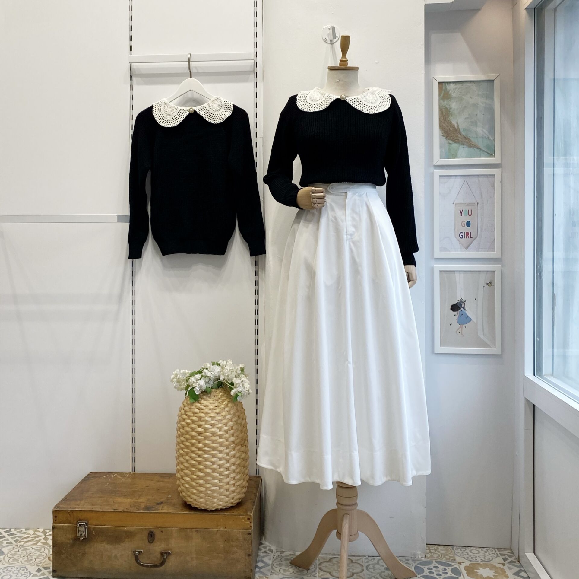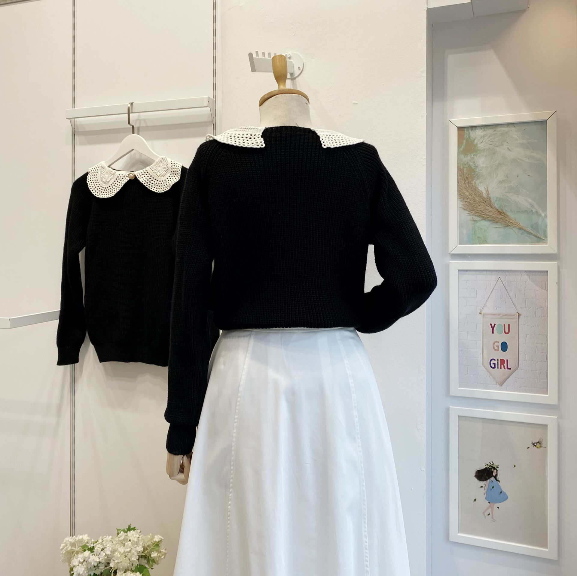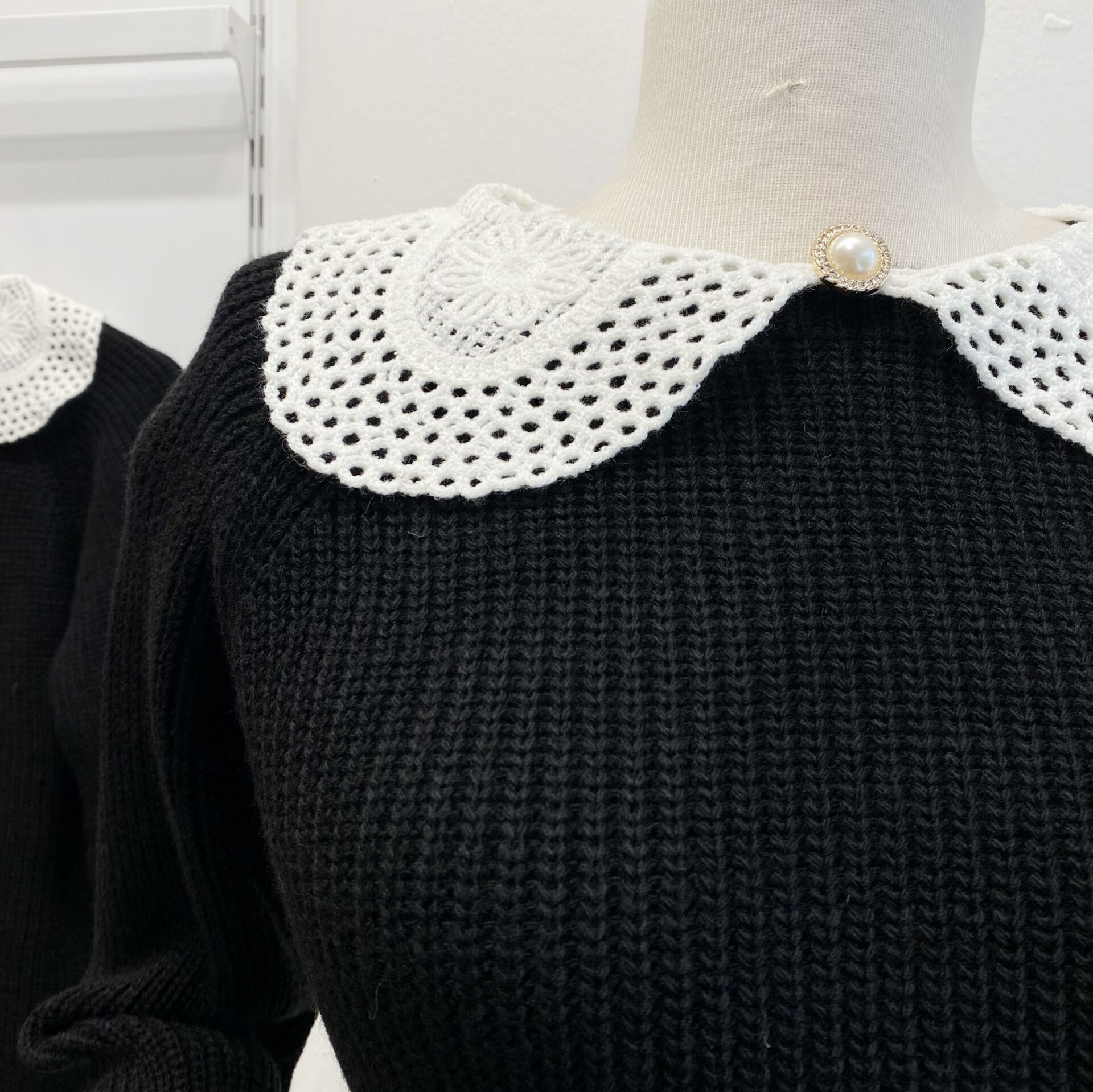İnci Broşlu Siyah Kazak