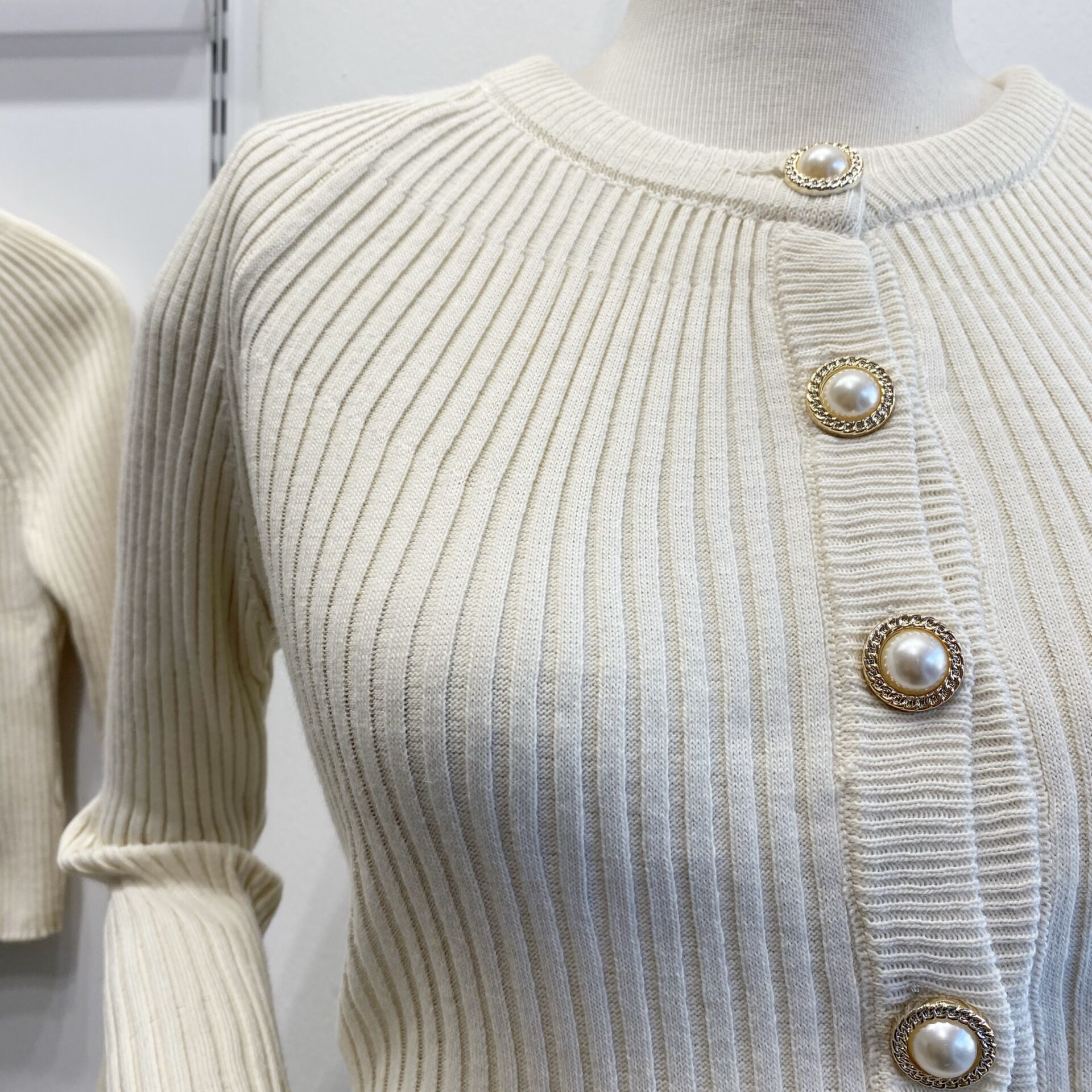 İnci Düğmeli Krem İspanyol Kol Hırka
