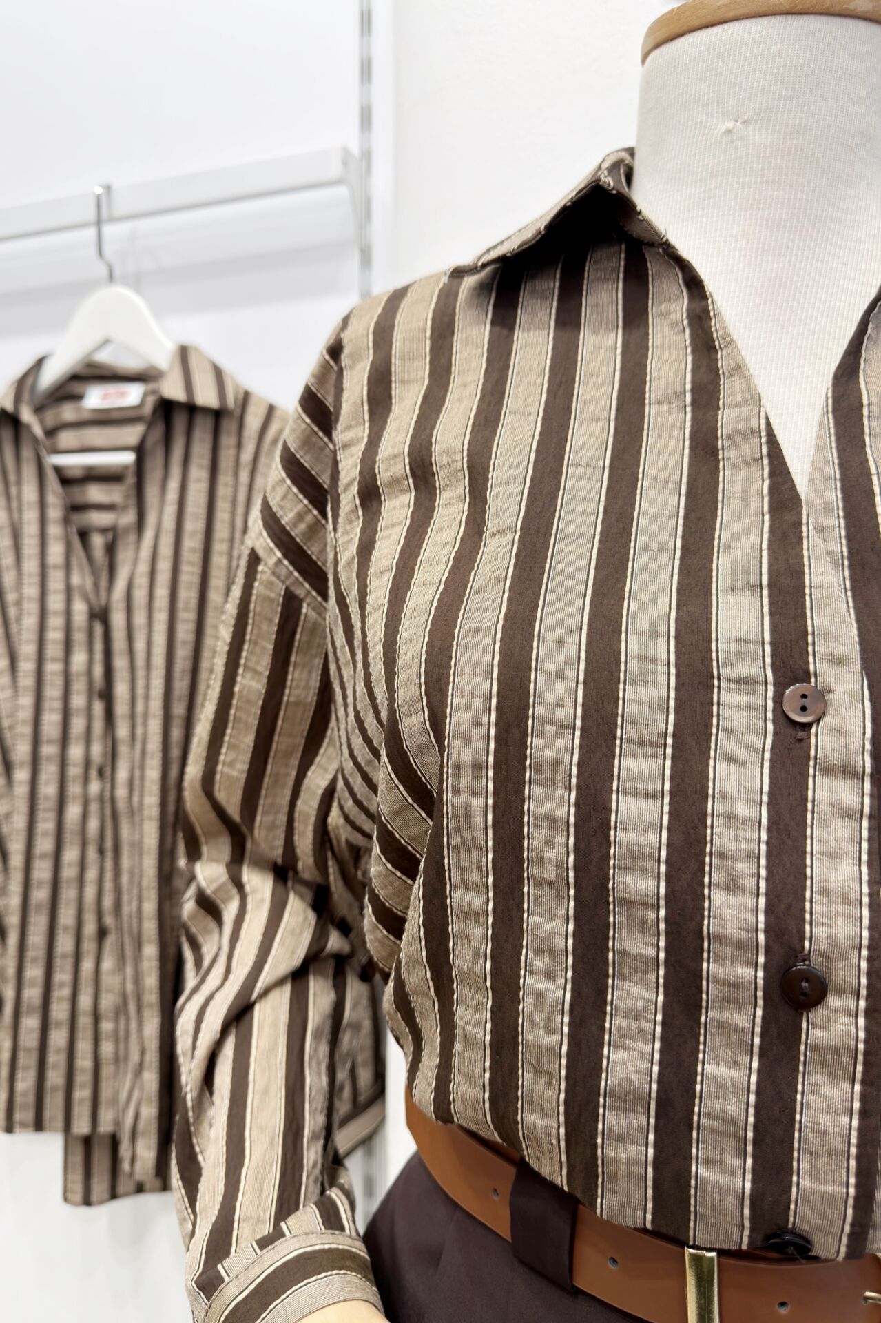 Kahverengi Çizgili Oversize Gömlek