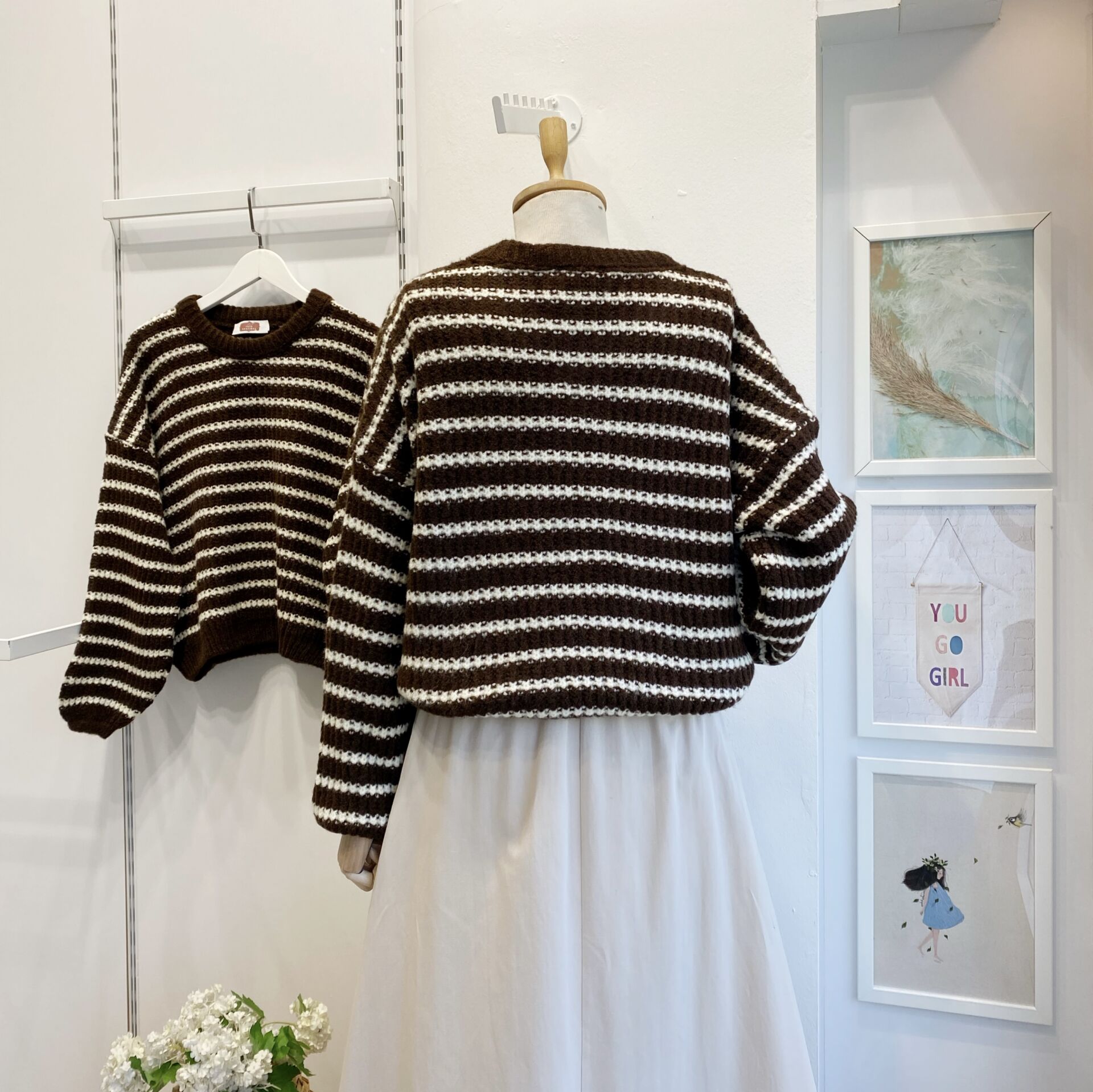 Kahverengi Çizgili Triko Kazak