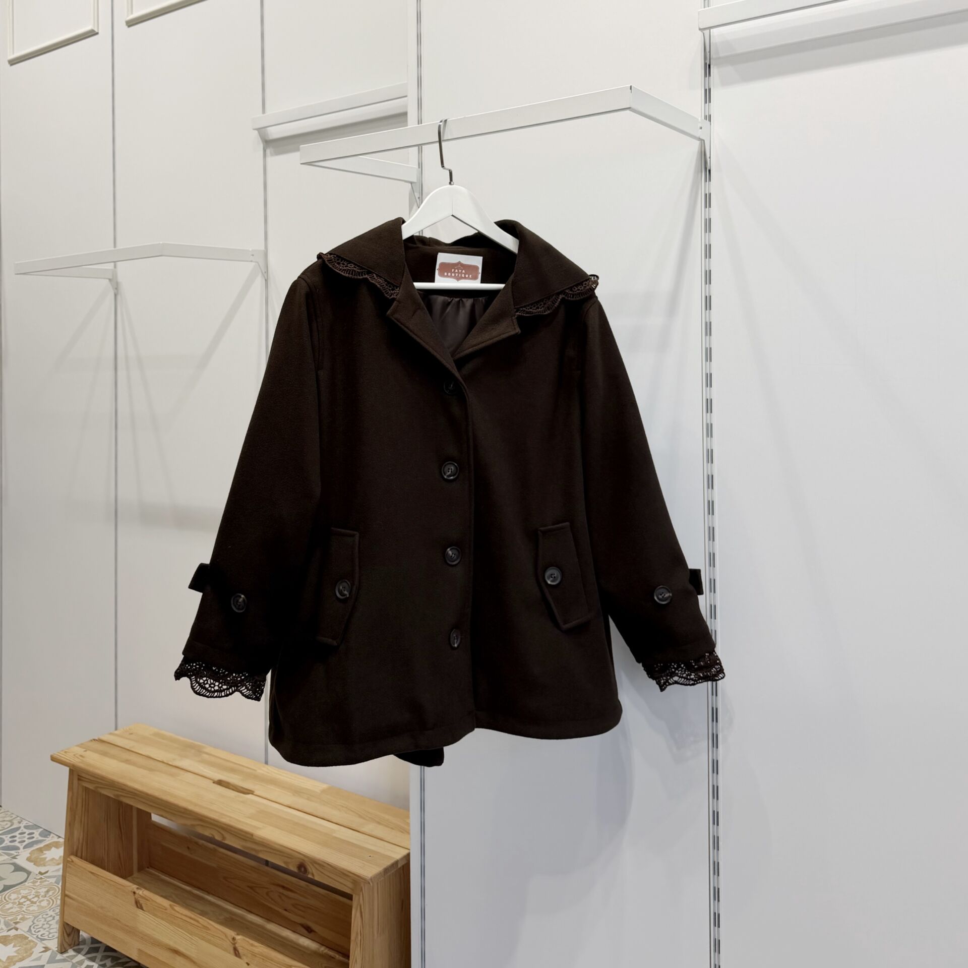 Kahverengi Dantel Kapüşonlu Kısa Kaşe Kaban