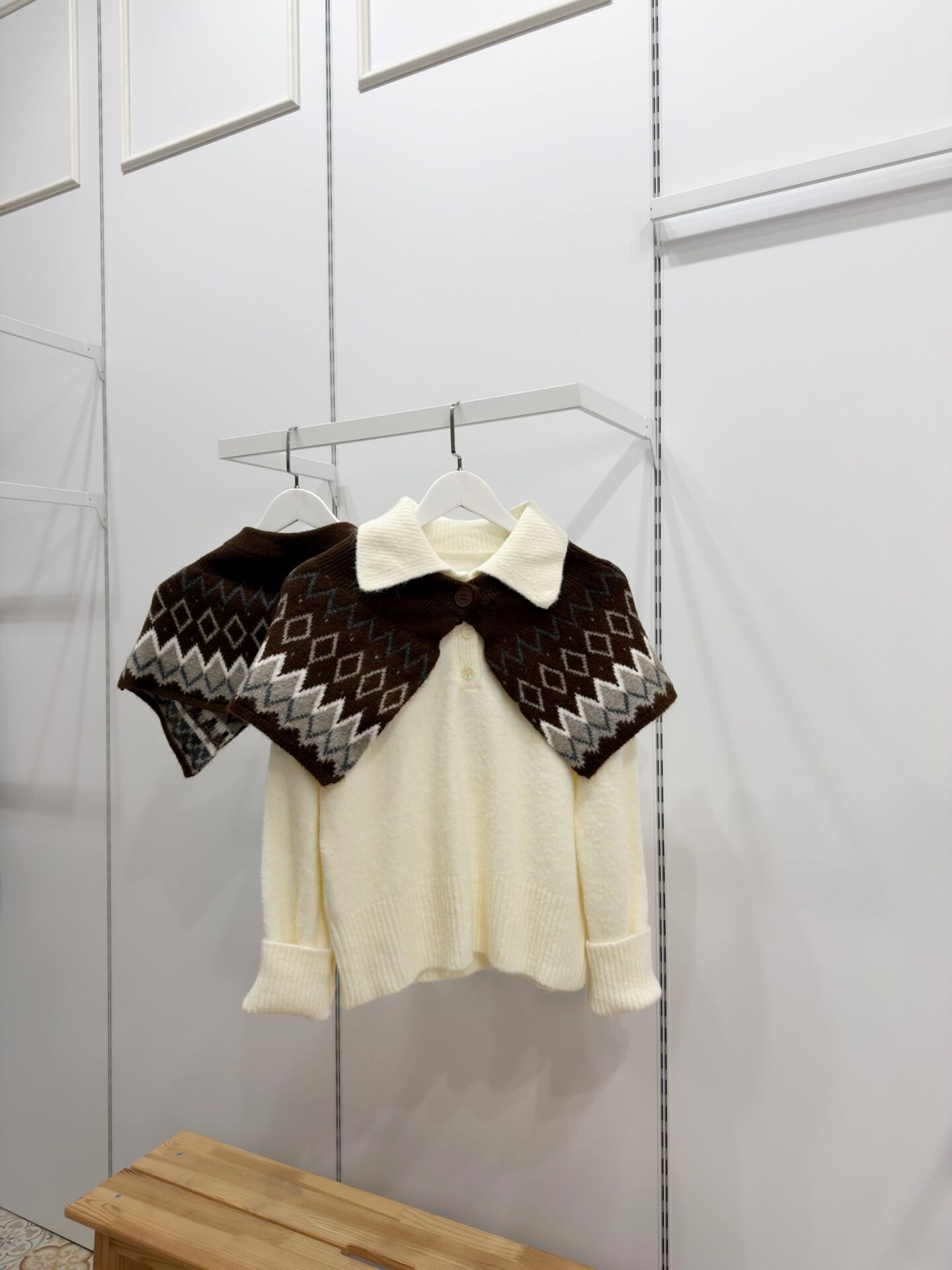 Kahverengi Desenli Triko Yaka