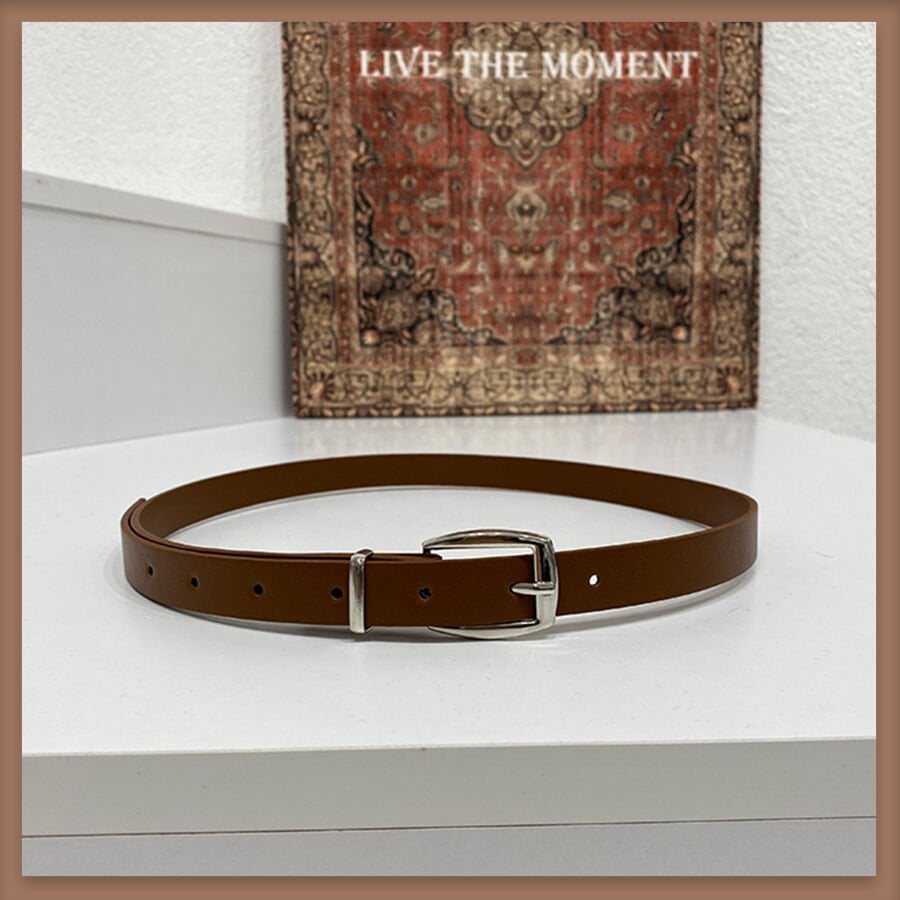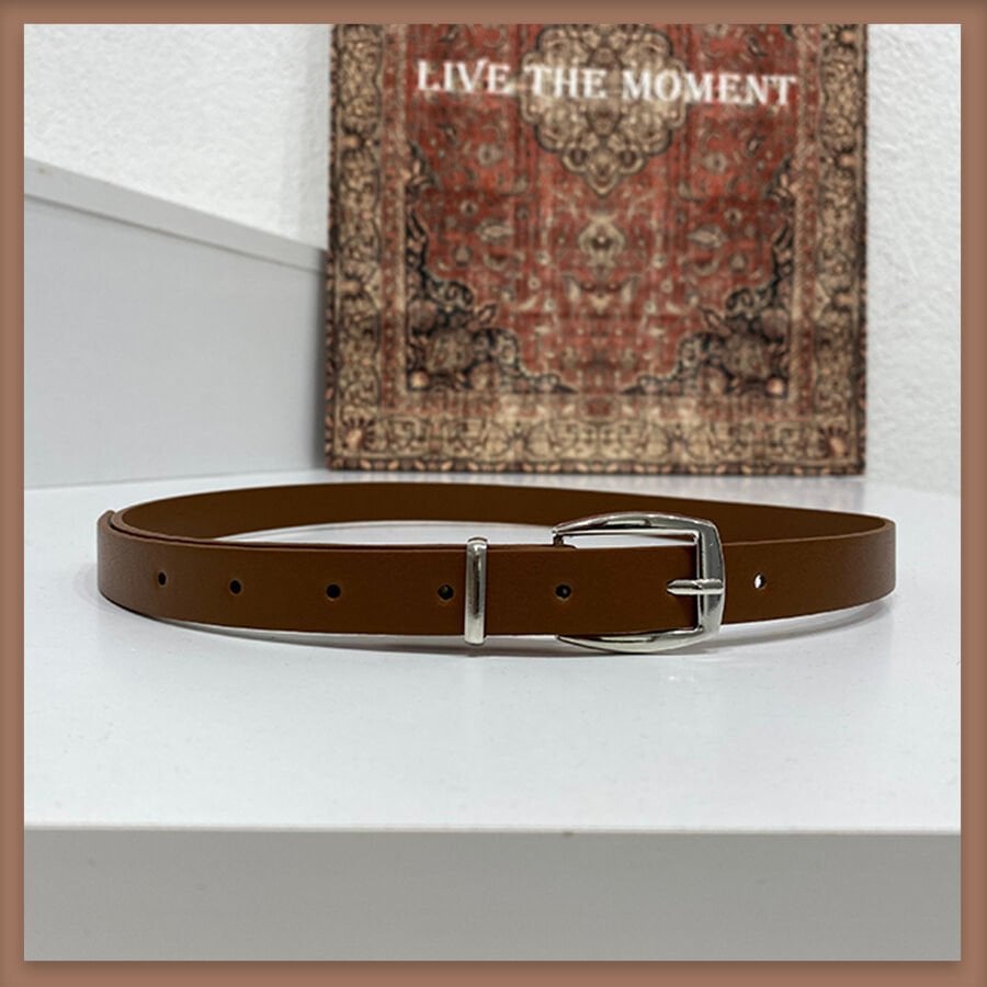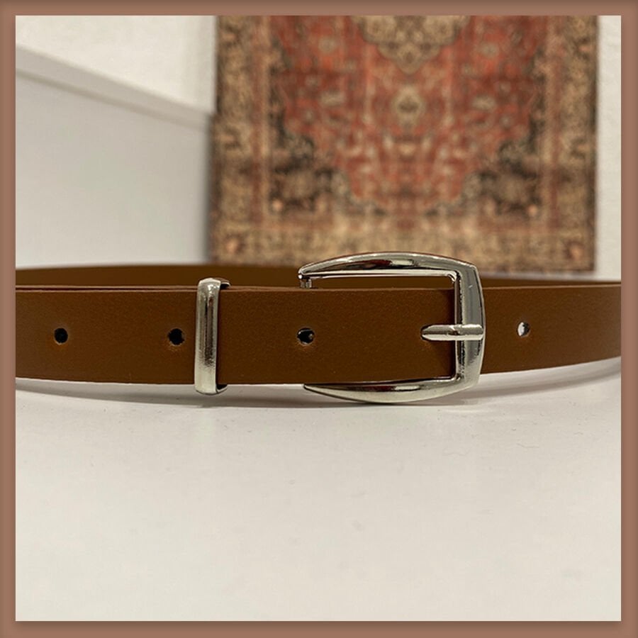 Kahverengi gümüş tokalı ince kemer