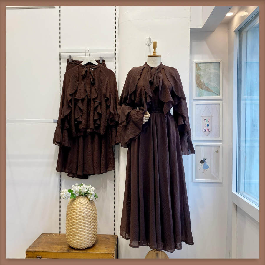 Kahverengi İspanyol Kol Mimosa Şifon Takım