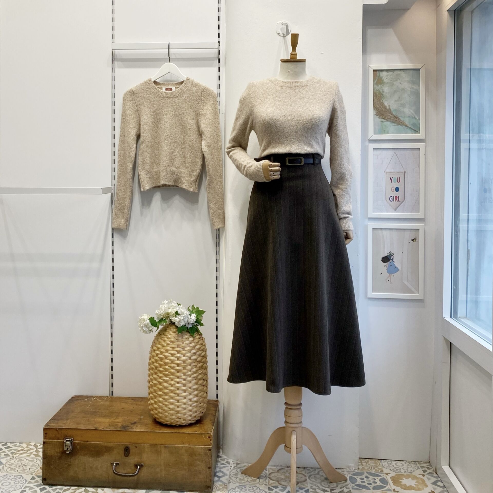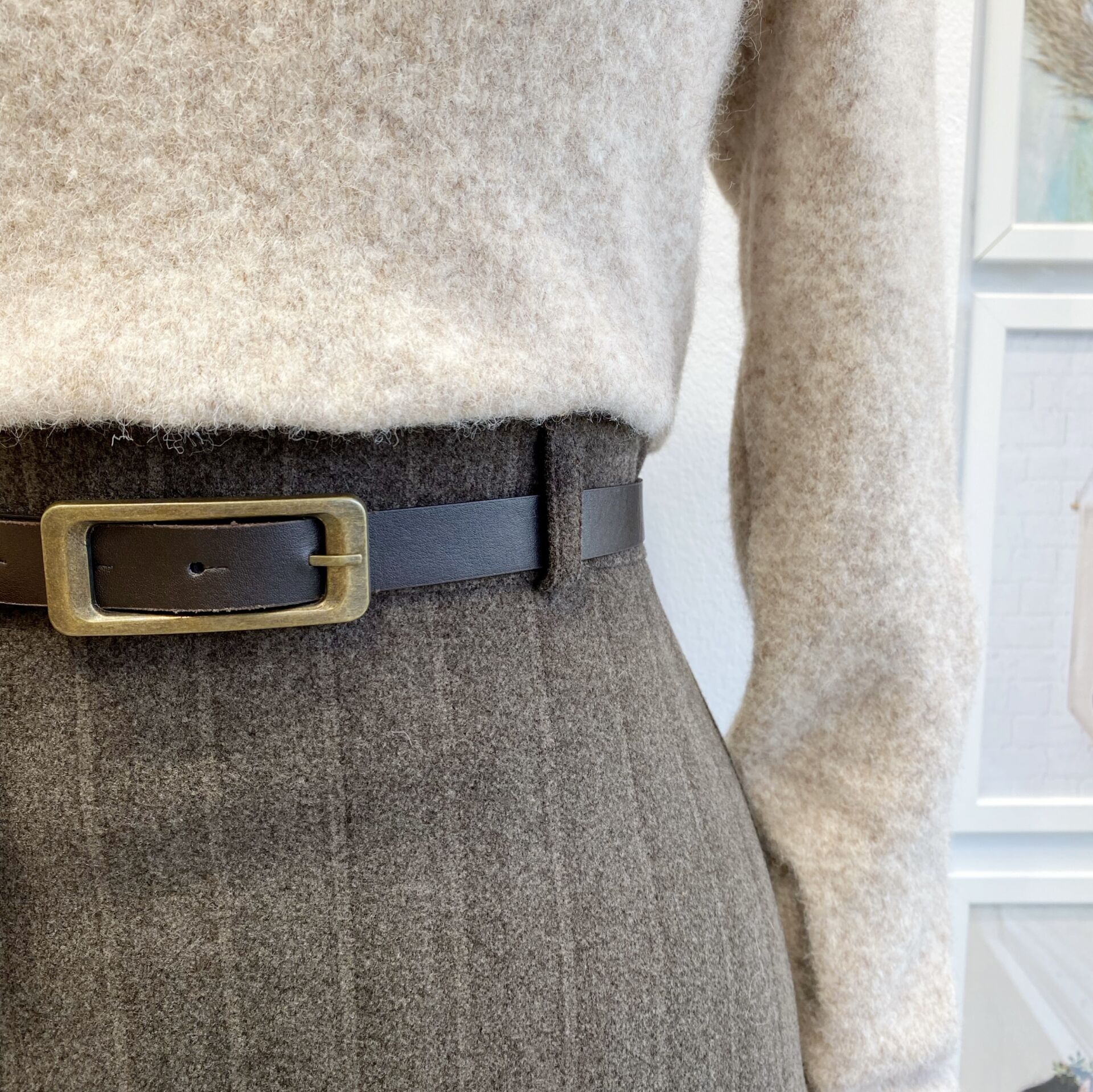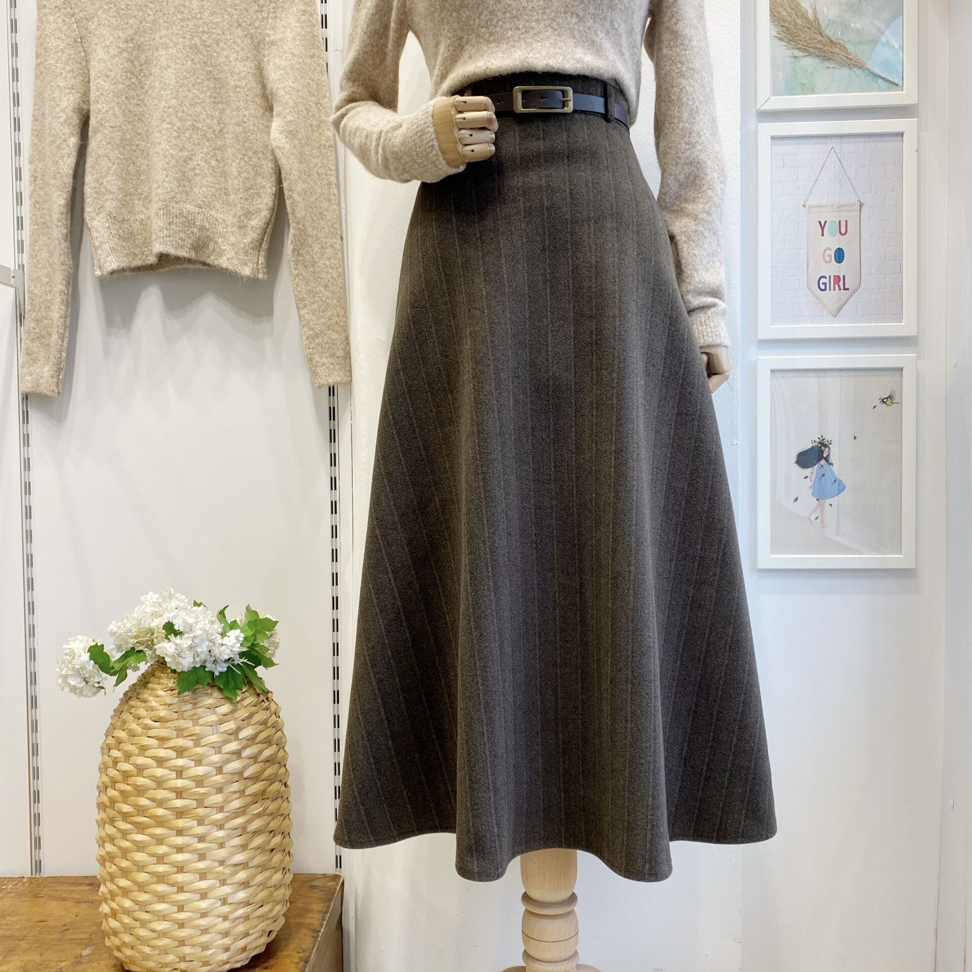 Kahverengi Kemerli Çizgi Desenli Kaşe Etek