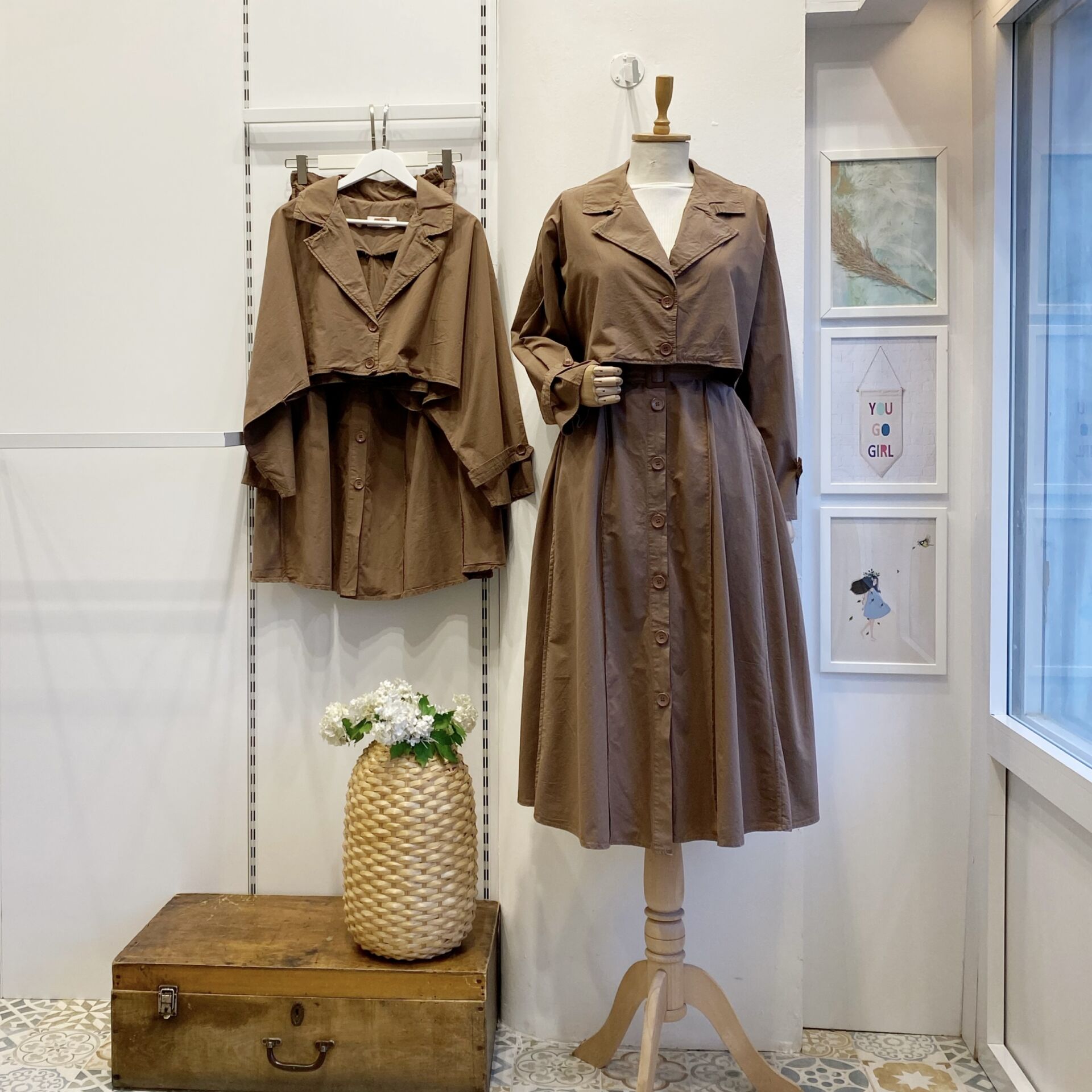 Kahverengi Kısa Trenç Ceketli Gabardin Takım