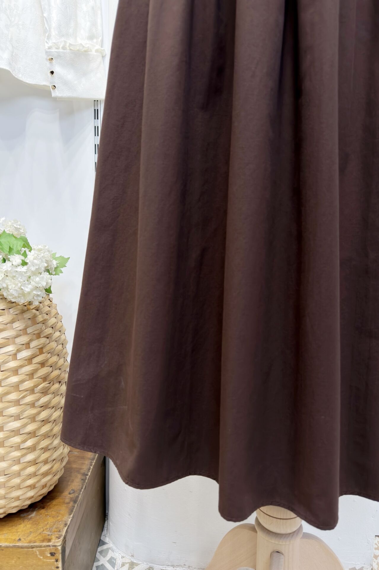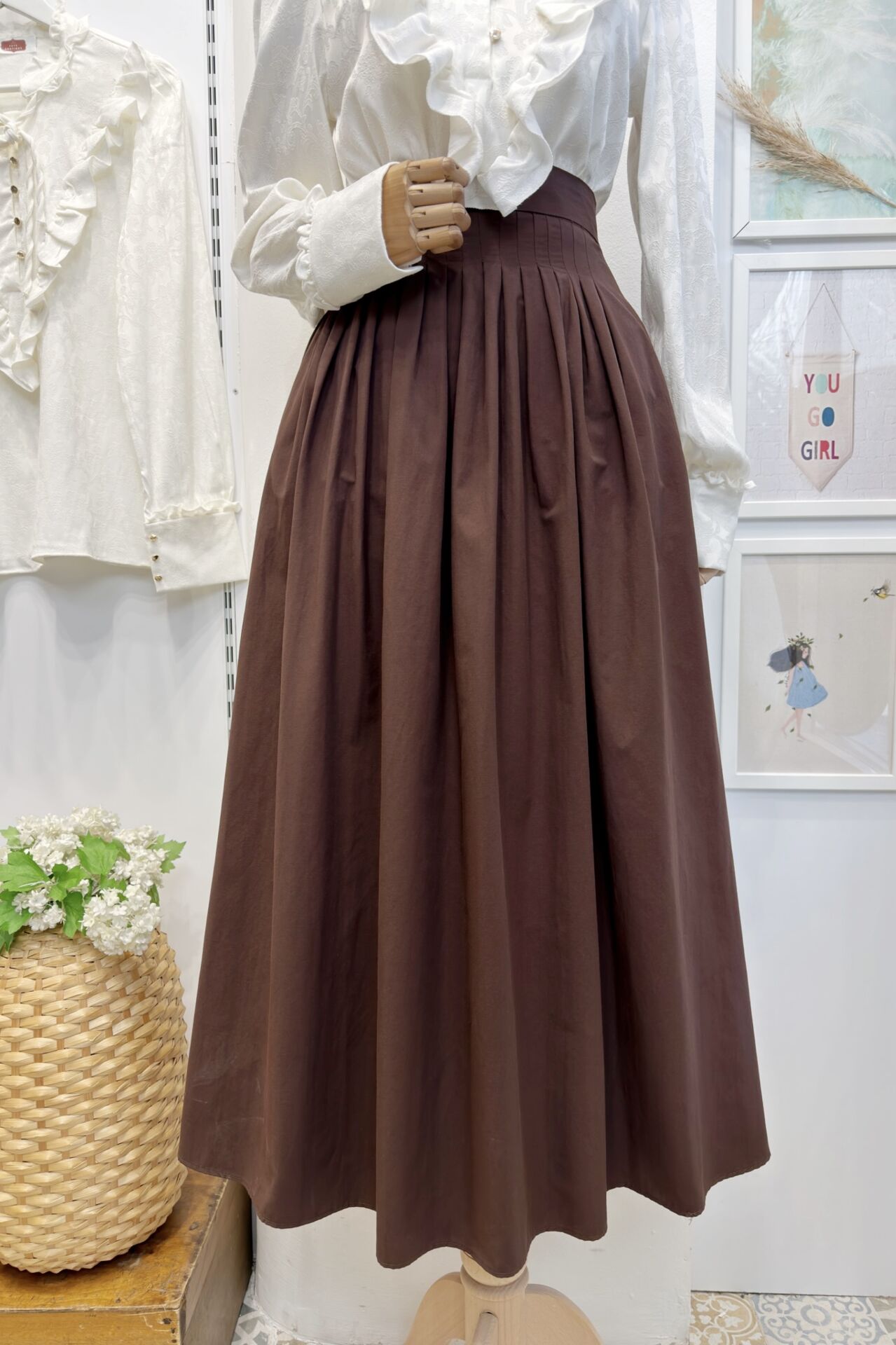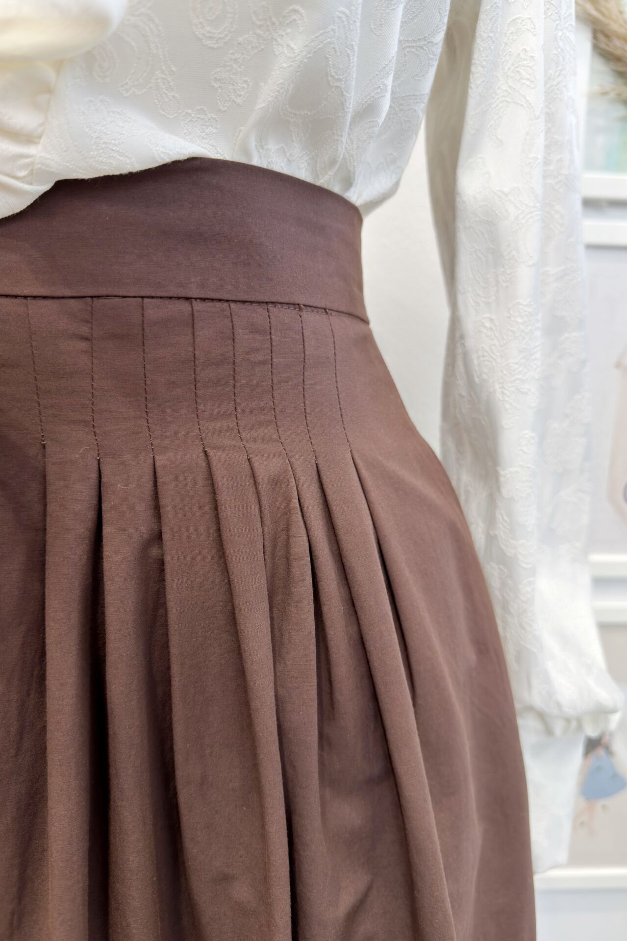Kahverengi Minik Pileli Poplin Sofia Etek