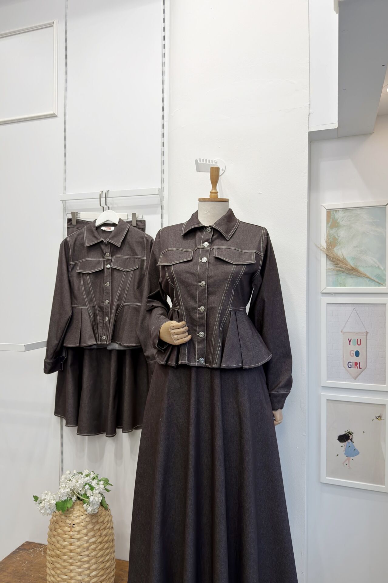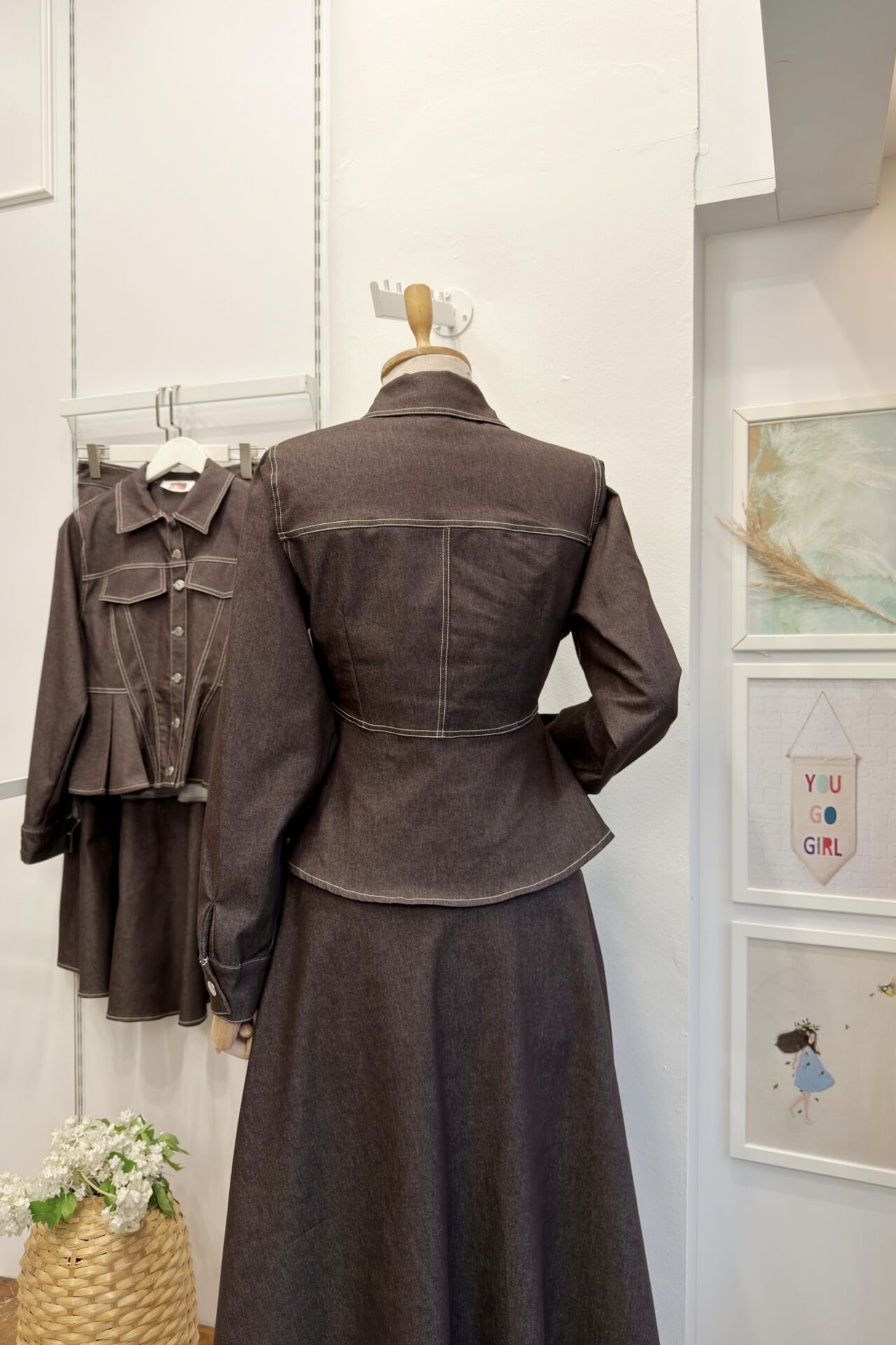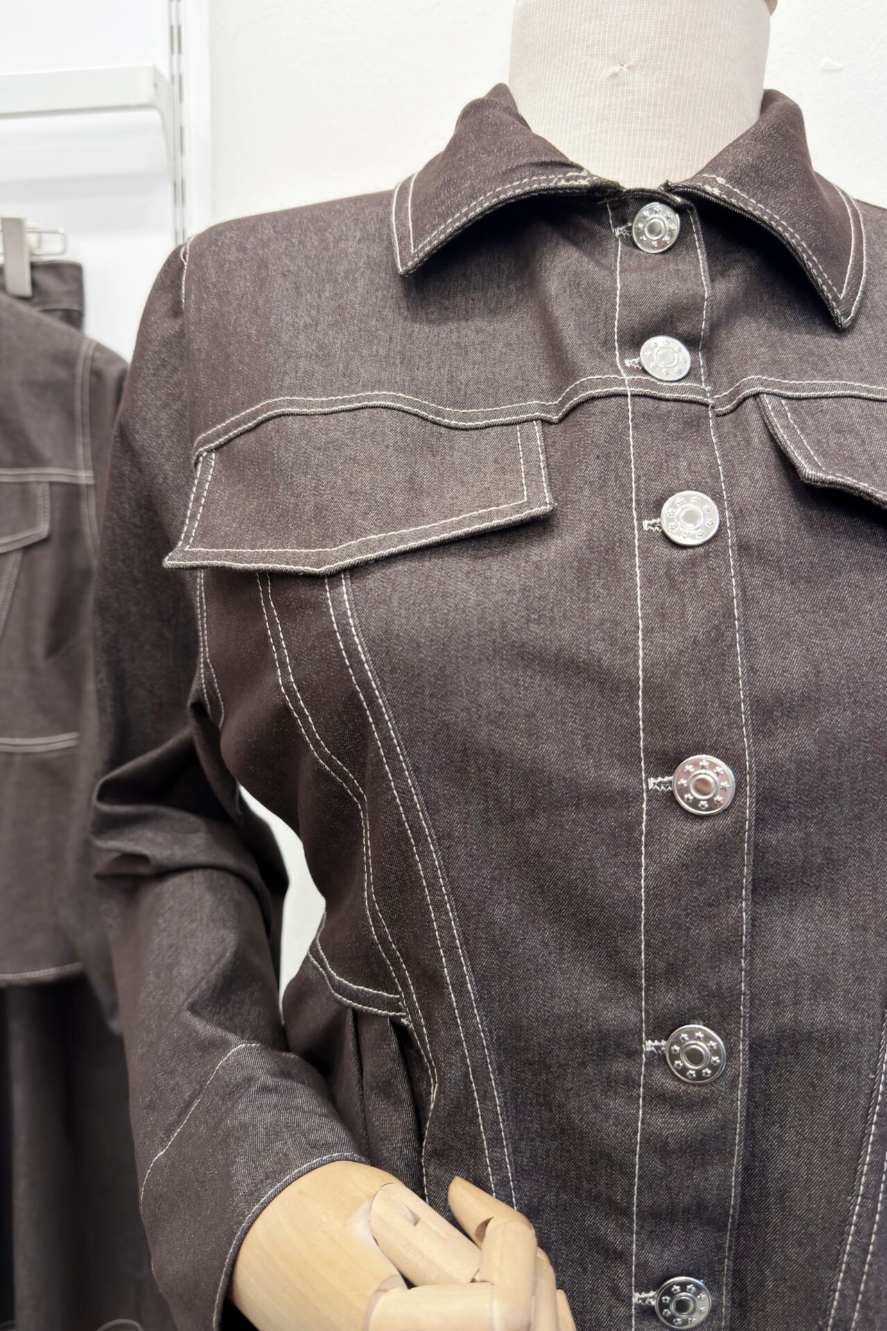 Kahverengi Pile Detaylı Plumetis Kot Takım