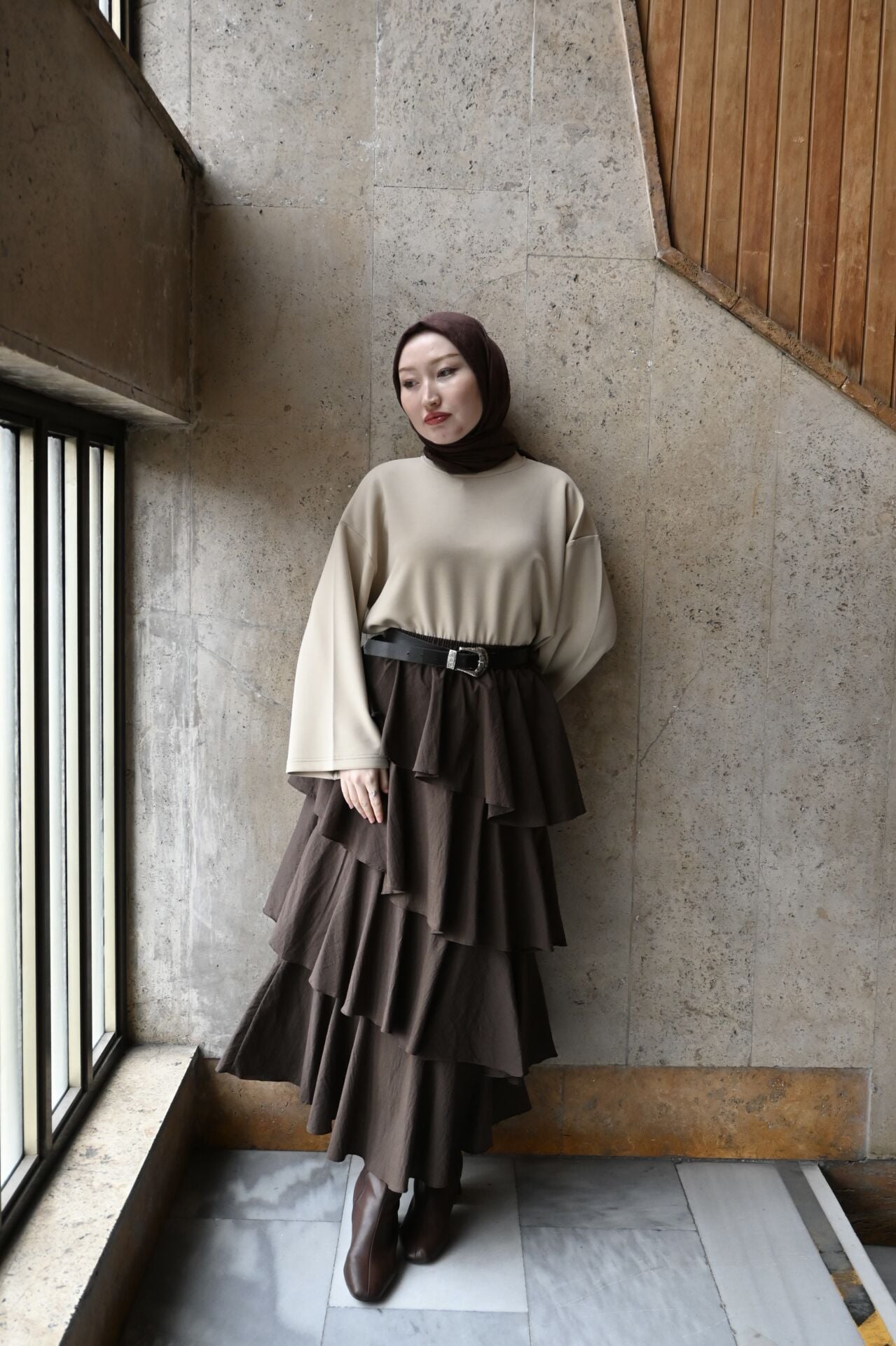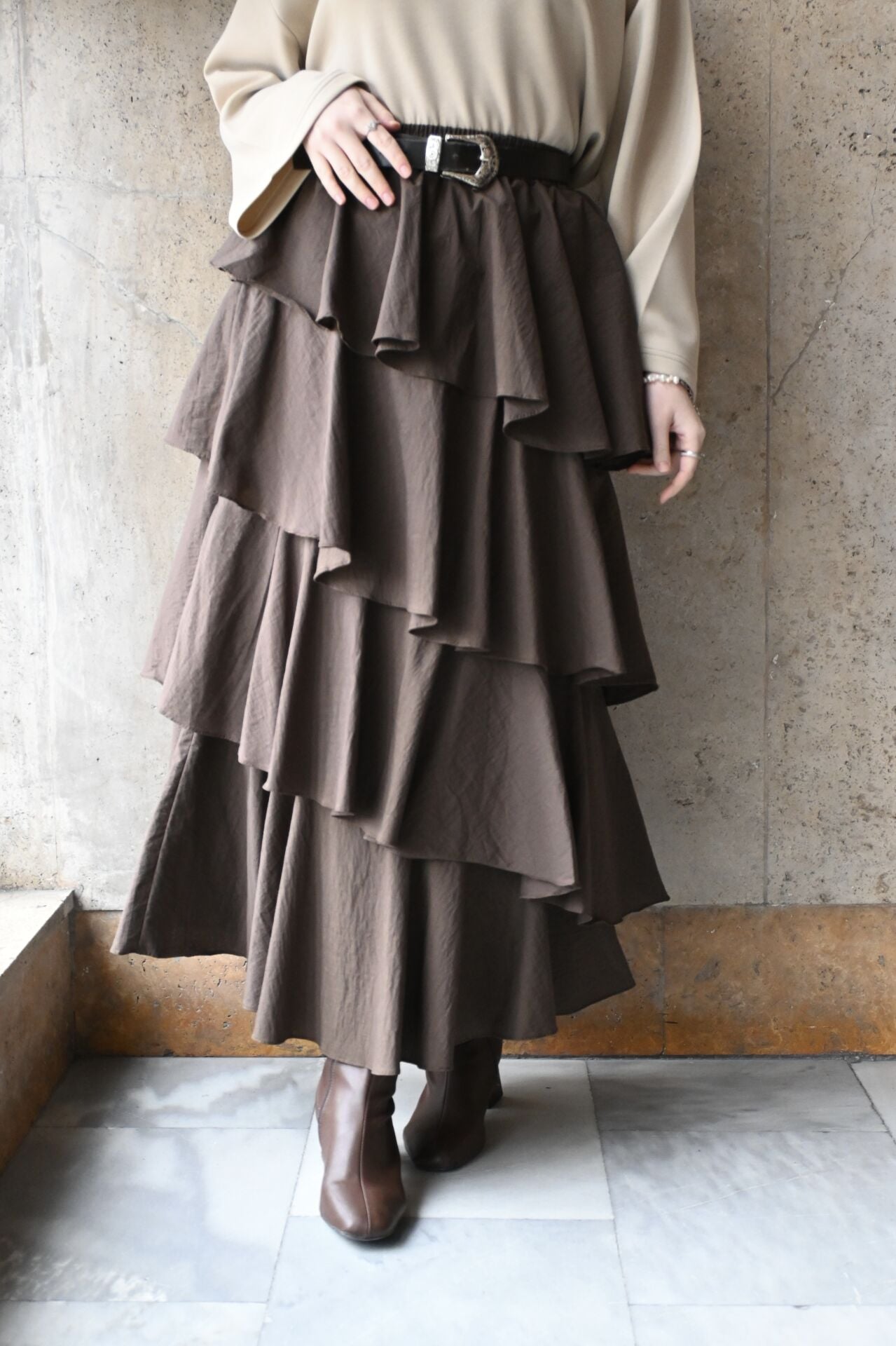 Kahverengi Sauter Katlı Etek
