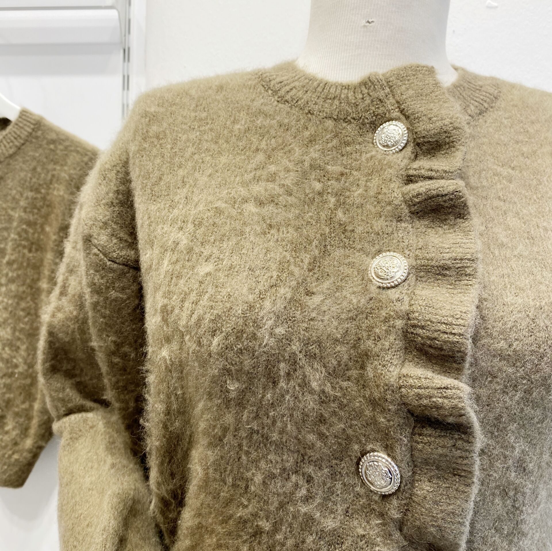 Kahverengi Silver Düğmeli Asimetrik Hırka