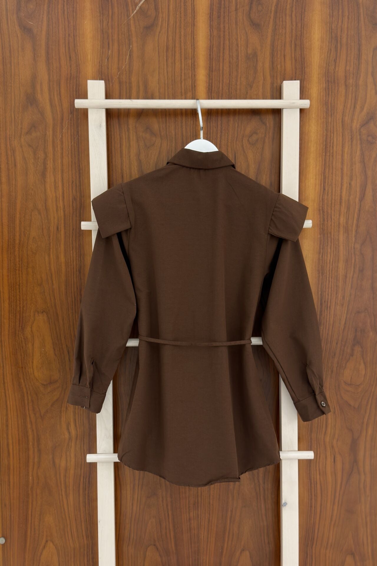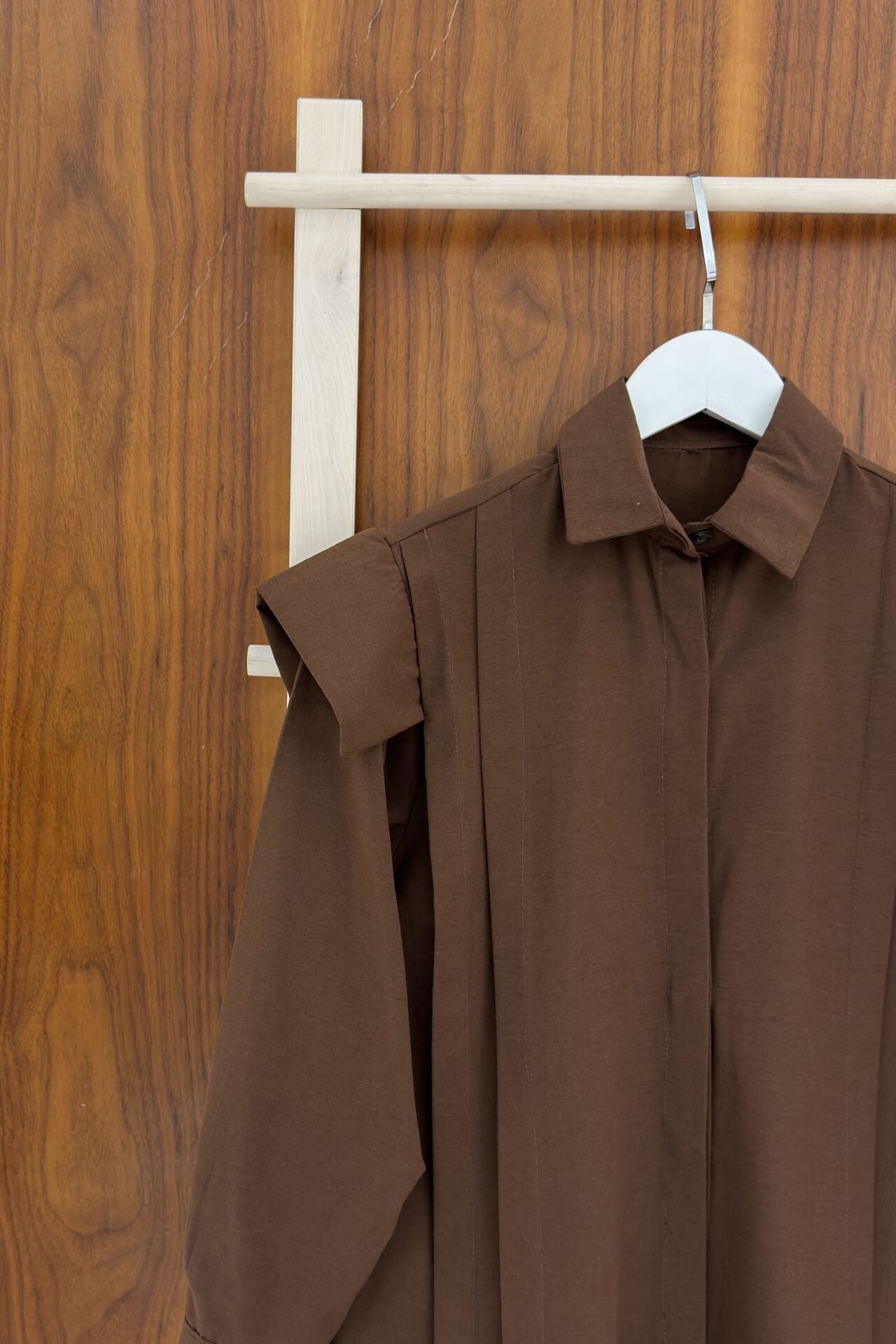 Kahverengi Vatka Görünümlü Poplin Gömlek