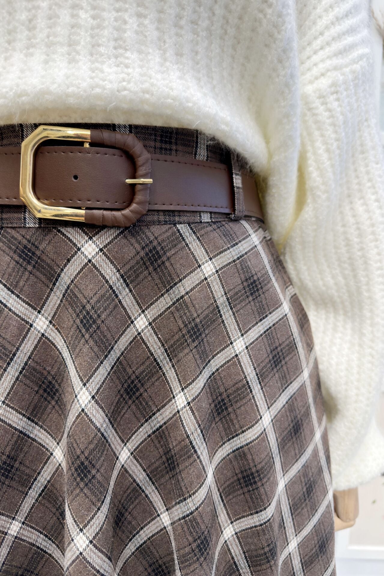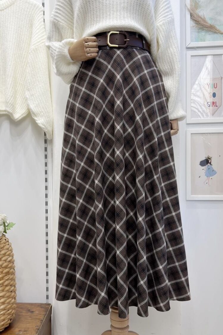 Kahverengi Verev Kesim Ekoseli Loom Etek
