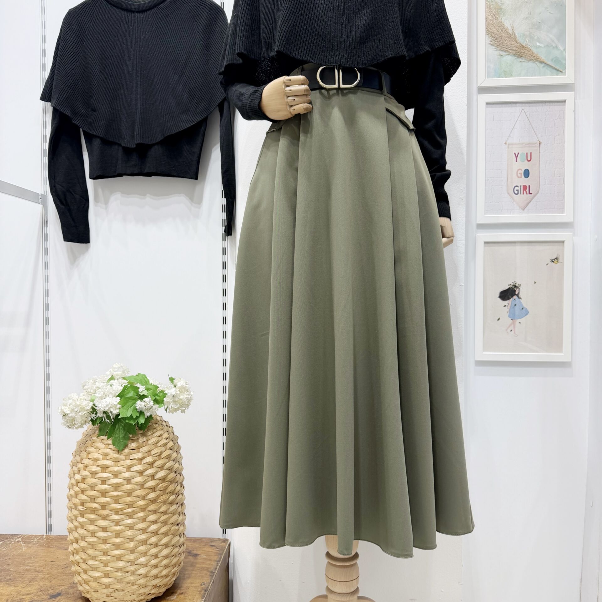 Kemer Detaylı Çağla Yeşili Crep Etek