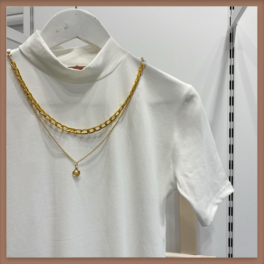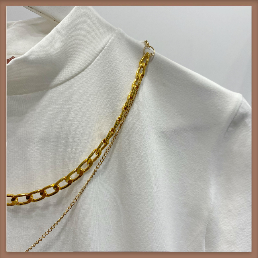 Kolye Detaylı Ekru Kısa Kollu T-Shirt