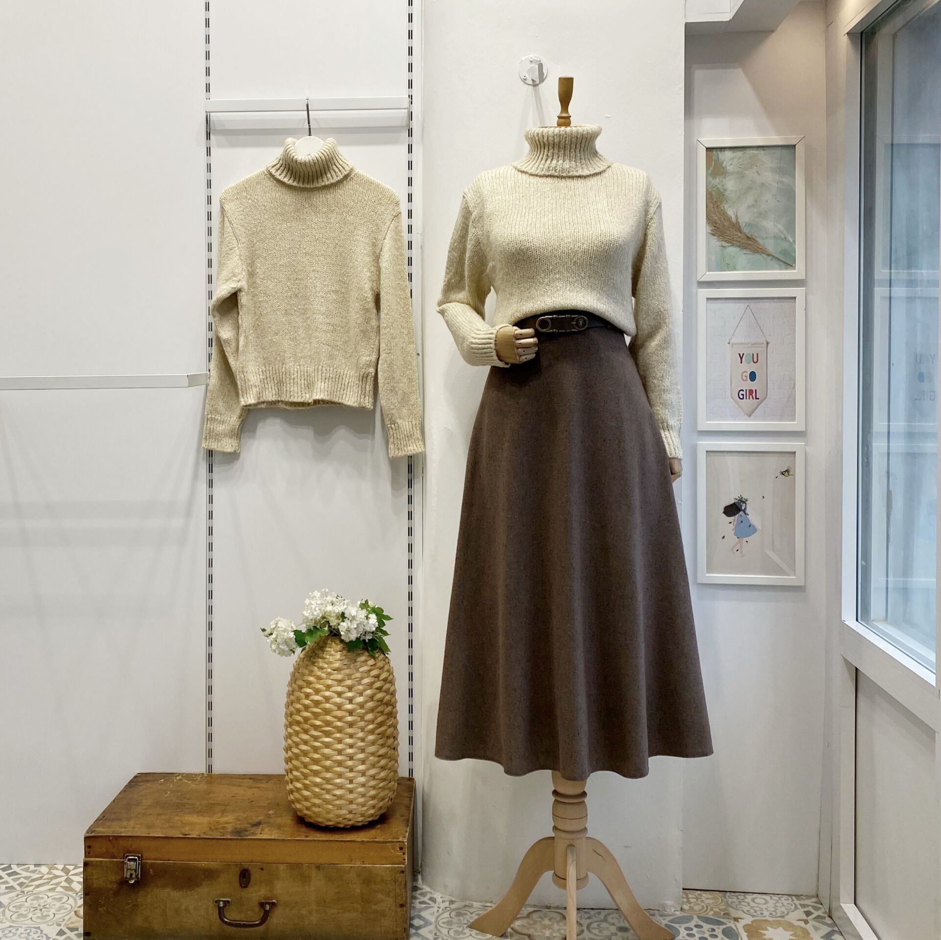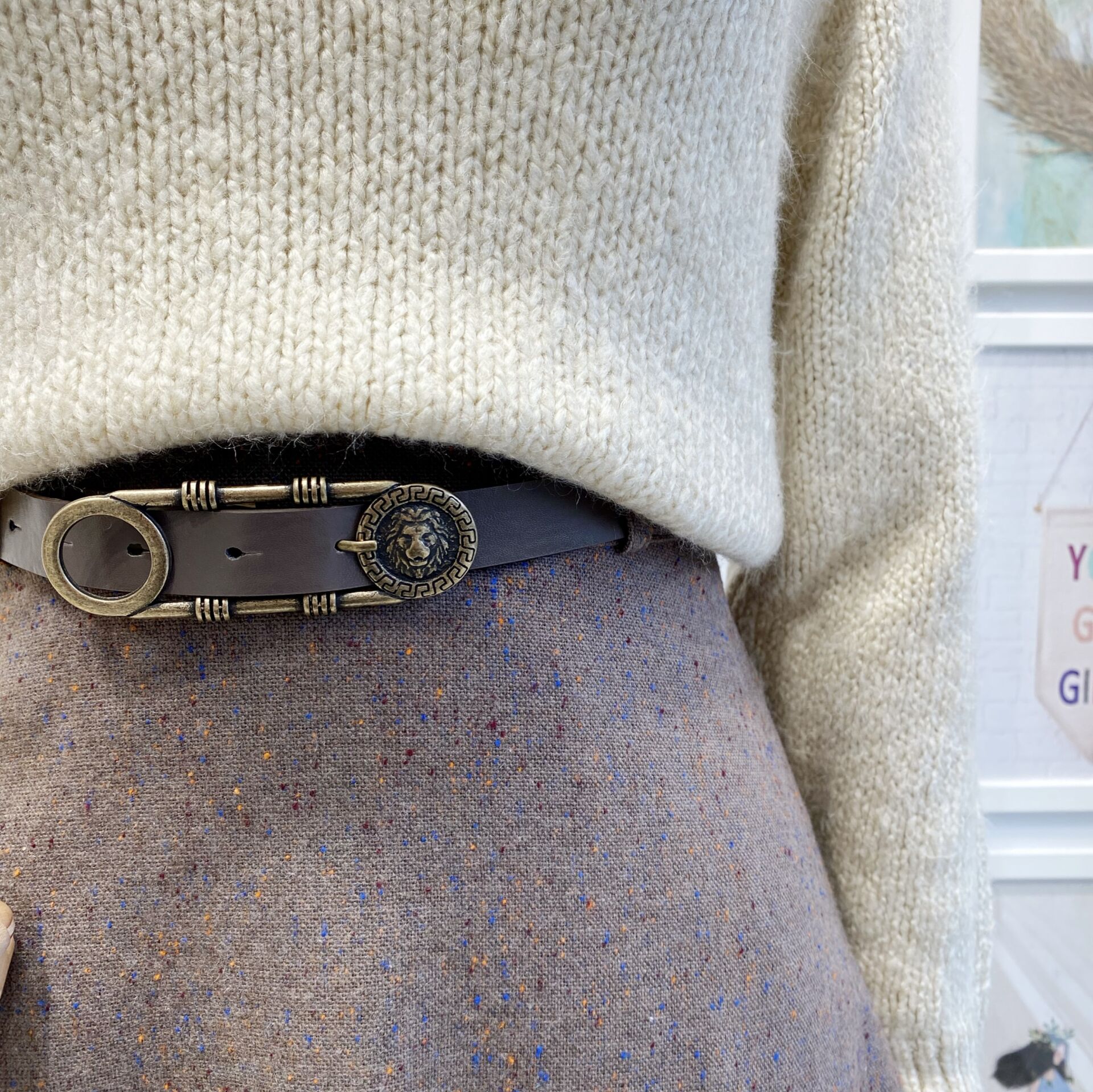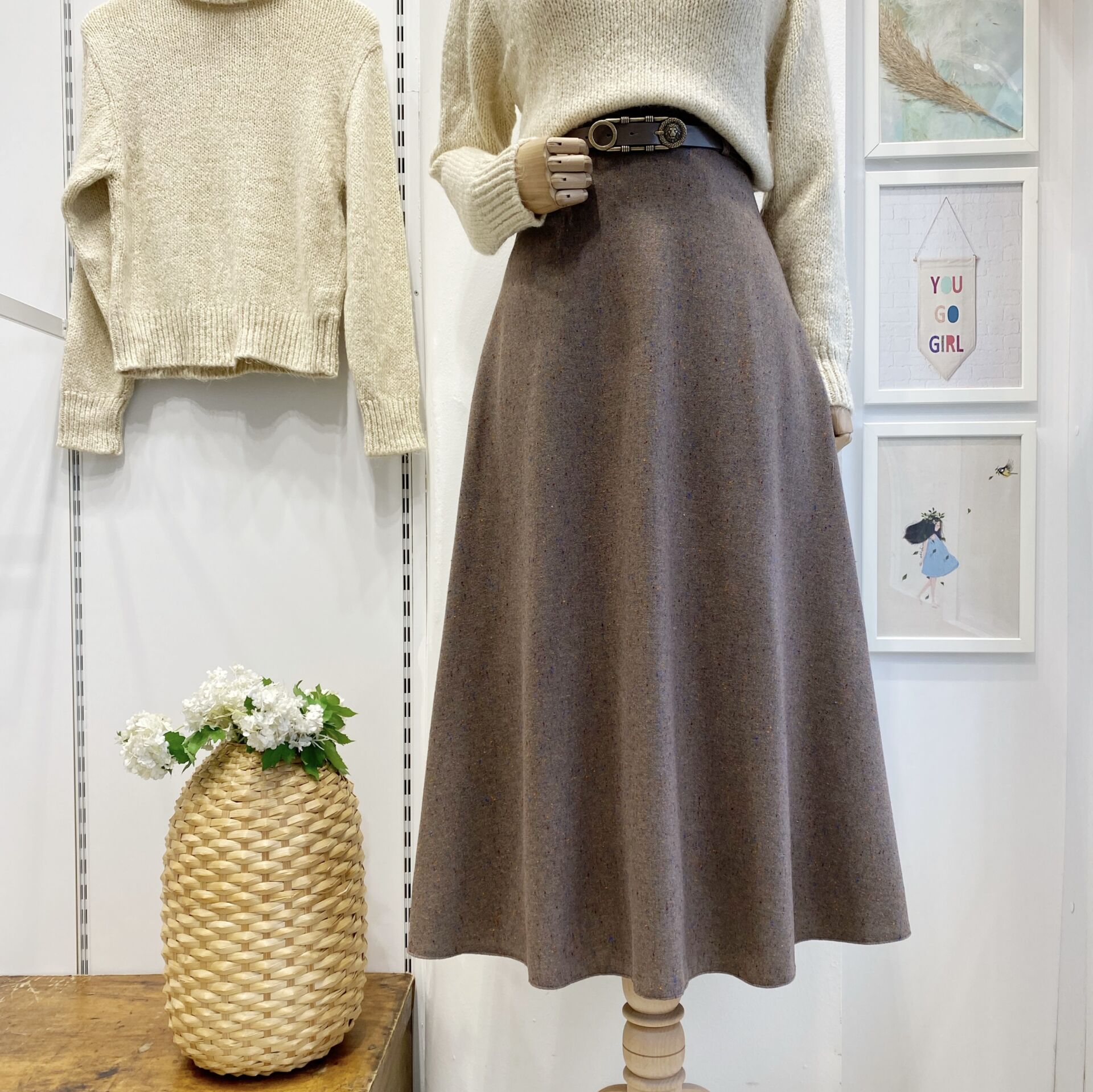 Koyu Vizon Kemerli İvory Kloş Etek M5Q7W