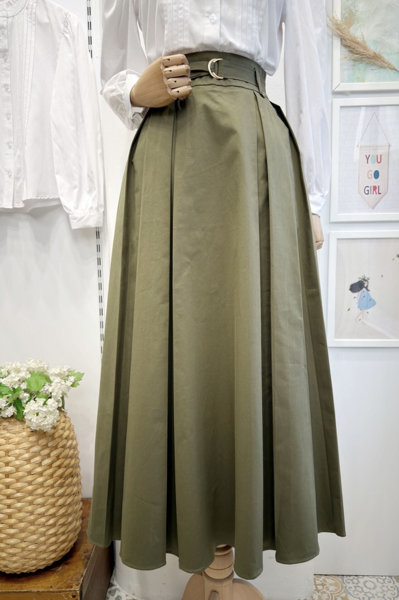 Koyu Yeşil Novera Kemer Detaylı Etek