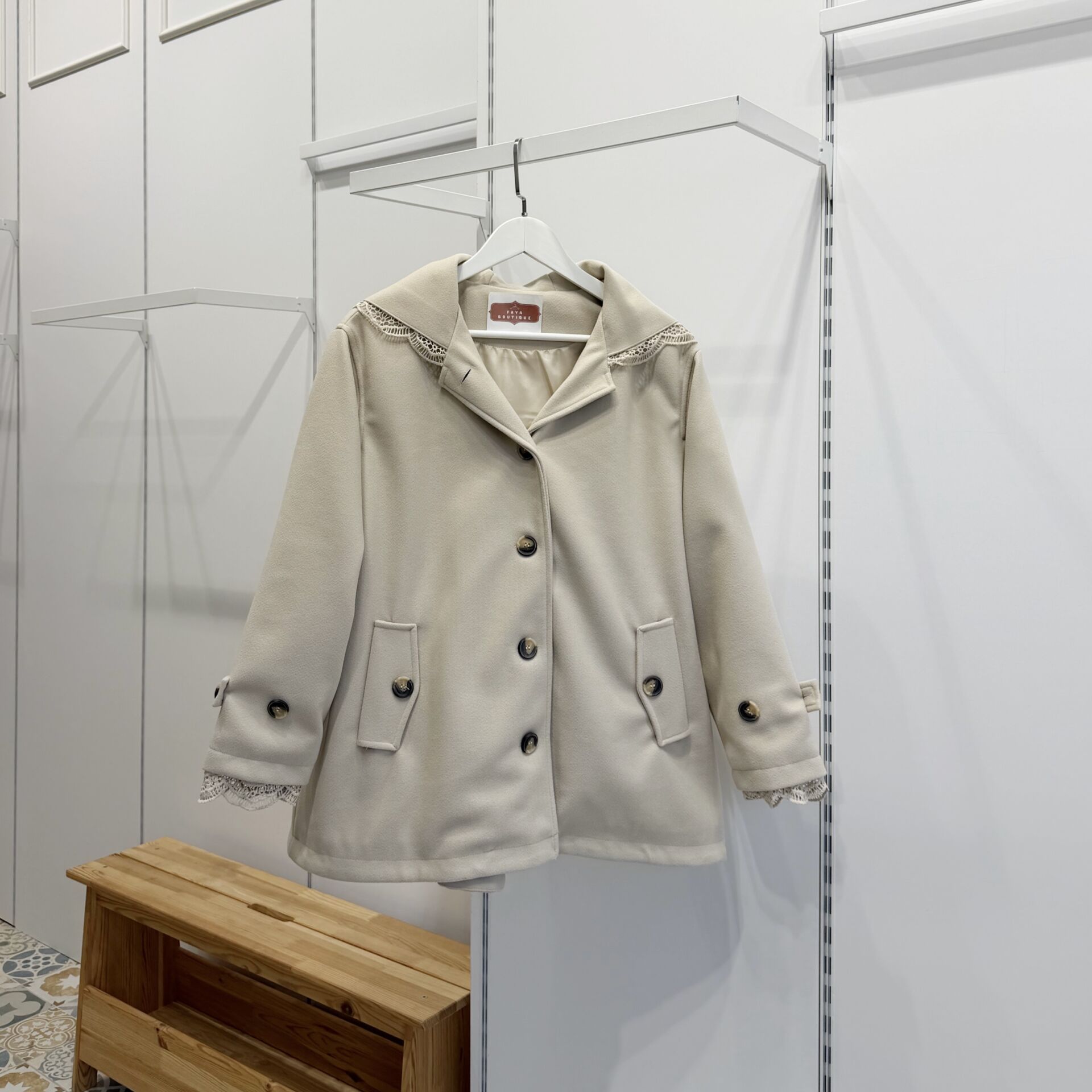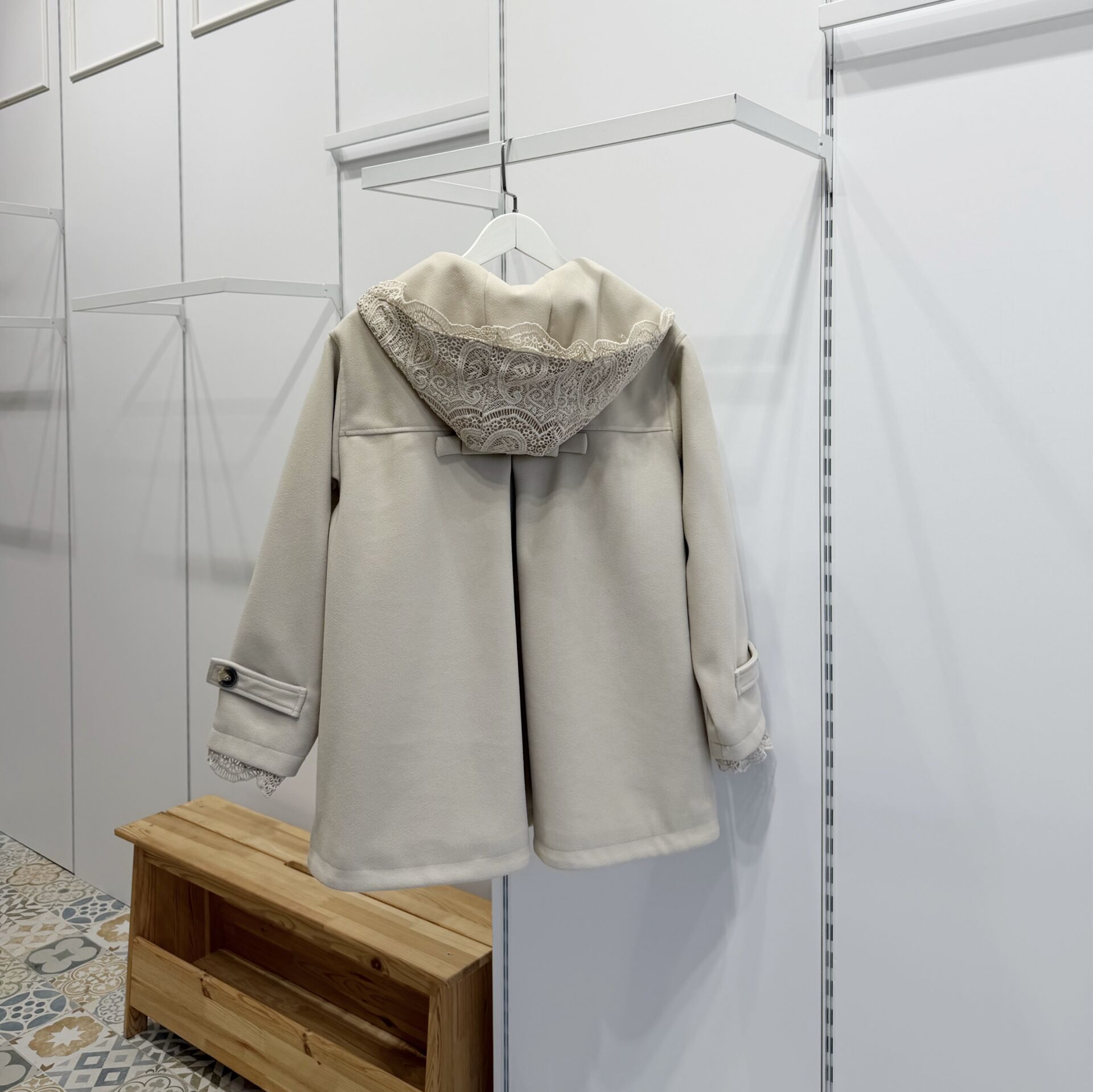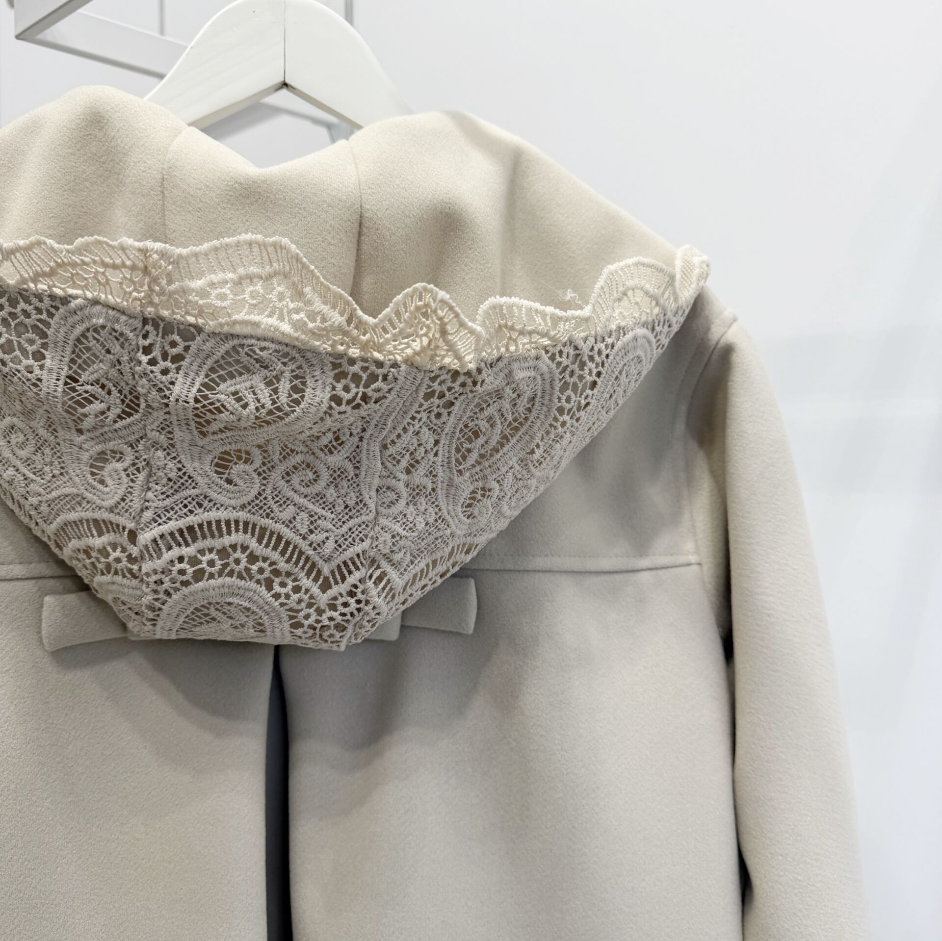 Krem Dantel Kapüşonlu Kısa Kaşe Kaban