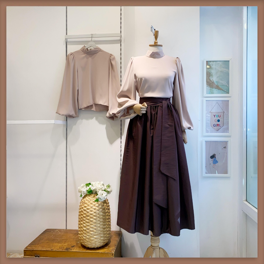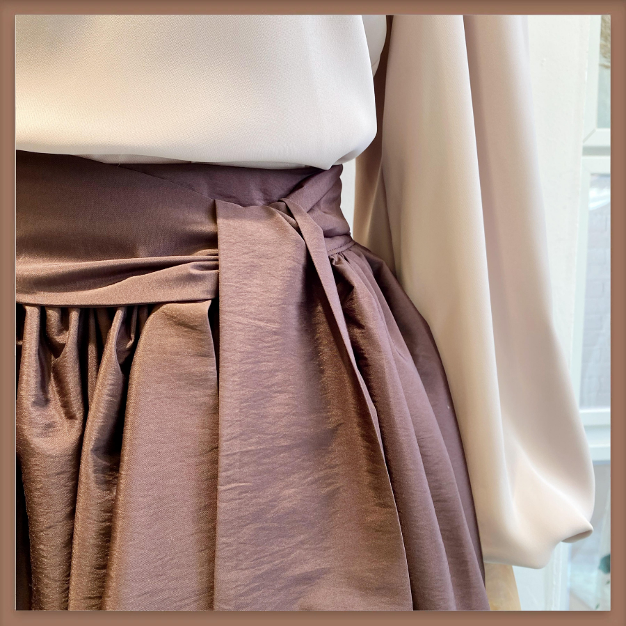 Kuşak Detaylı Sık Piliseli Paraşüt Kumaş kahverengi Etek