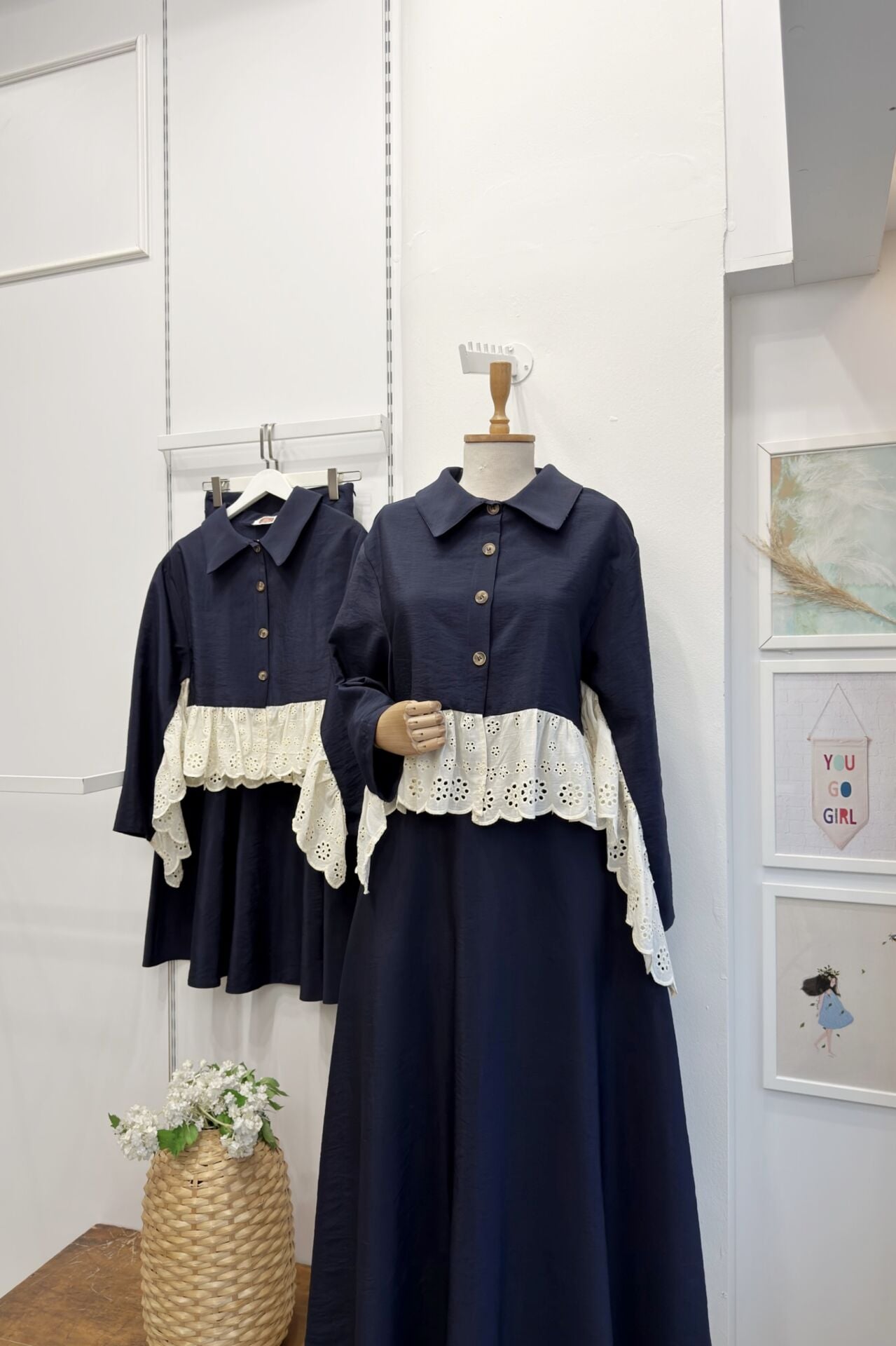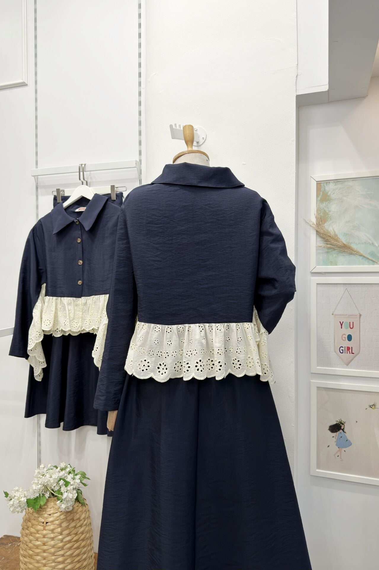 Lacivert Brode Detaylı Paraşüt Kumaş Takım